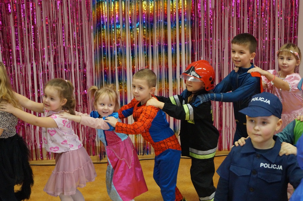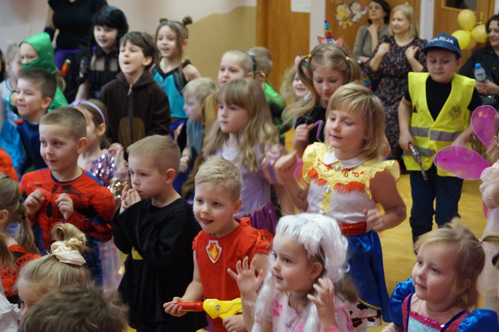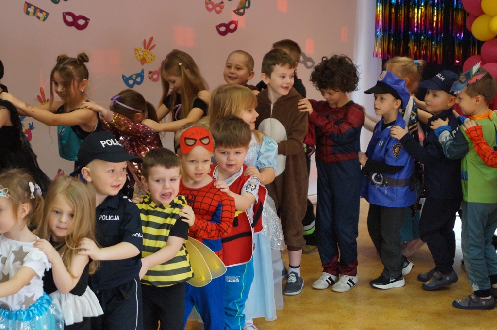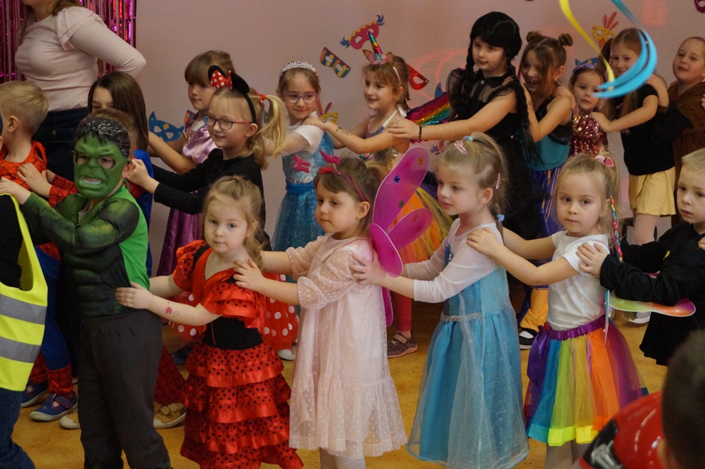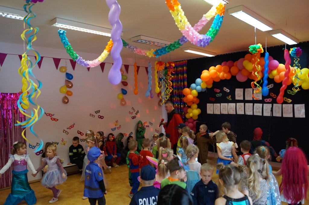 Podczas balu zorganizowano tańce oraz konkursy, które dostarczyły dzieciom wielu pozytywnych wrażeń. Uczestnikom towarzyszyła radosna atmosfera, a wspólna zabawa sprzyjała integracji grup przedszkolnych. Bal poprowadził Pan Maciej Duda - iluzjonista Damatus Studio Magic ART. Dla dzieci przygotowano również słodki poczęstunek.