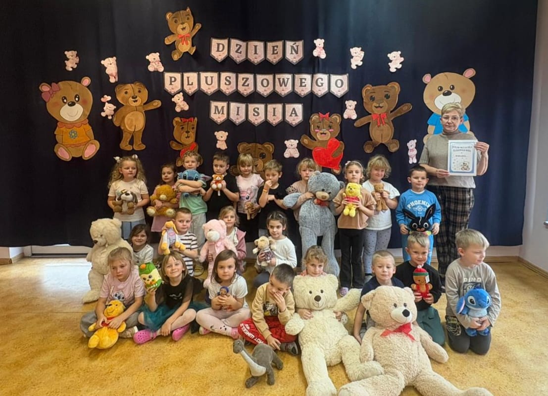 W Przedszkolu Samorządowym w Gorzkowicach 25.11.2025 r. obchodziliśmy radosny Dzień Pluszowego Misia, który dostarczył dzieciom mnóstwo uśmiechu i dobrej zabawy. Przedszkolaki przyniosły do placówki swoje ulubione pluszowe misie, które towarzyszyły im przez cały dzień. Nauczycielki przygotowały dla dzieci tematyczne zabawy. Nie zabrakło również świetnie zorganizowanych konkursów, w których dzieci brały udział z ogromnym zaangażowaniem i radością. Dużym zainteresowaniem cieszyła się także piękna dekoracja, przygotowana specjalnie na tę okazję, która stanowiła idealne tło do wspólnych pamiątkowych zdjęć. Na zakończenie wydarzenia każda grupa otrzymała dyplom konkursowy, który był miłym podsumowaniem wspólnie spędzonego czasu. To był dzień pełen ciepła, uśmiechu i misiowych przygód! Uroczystość przygotowały Panie: Kamila Kaźmierczak, Ewelina Ozga,