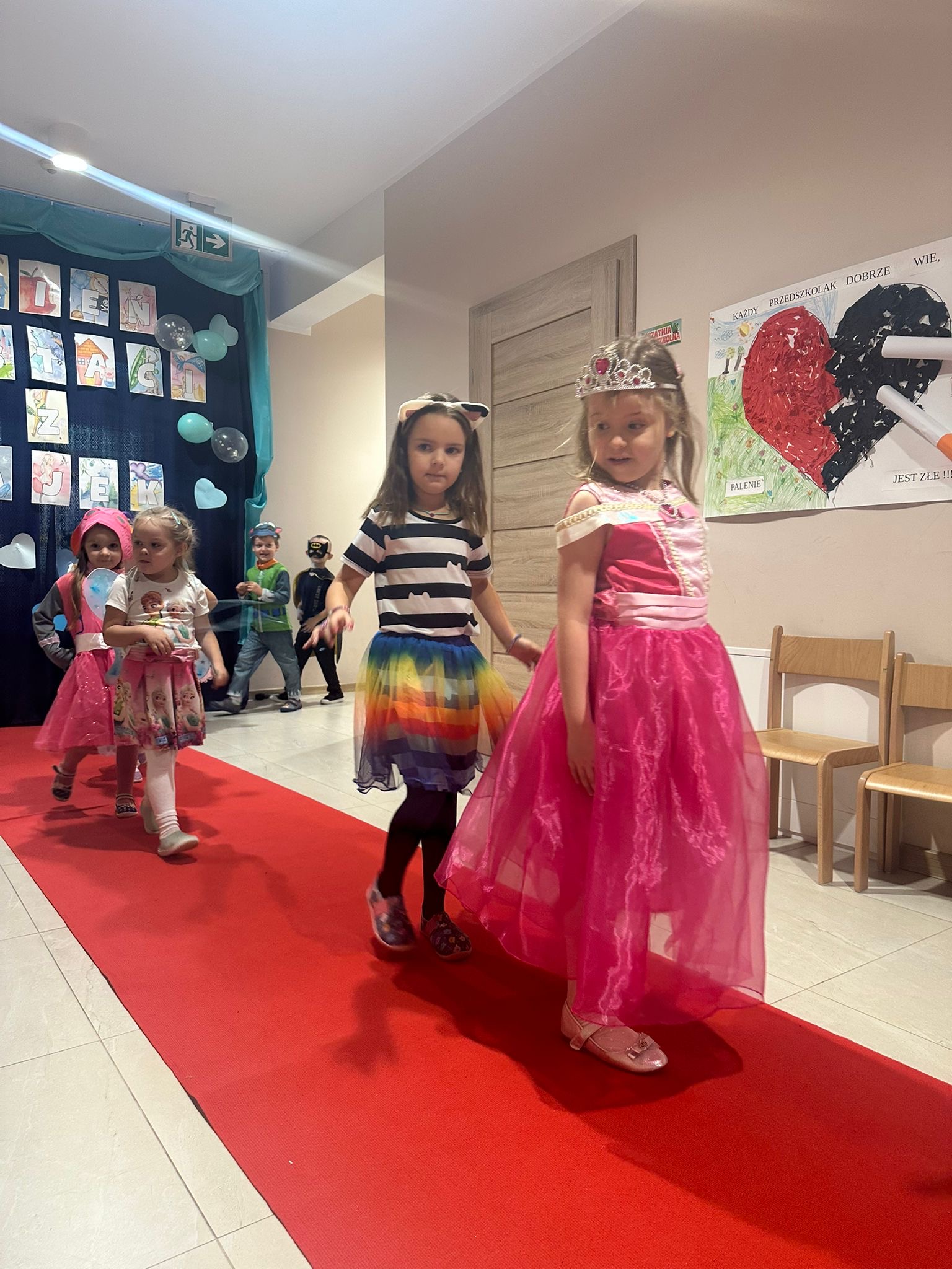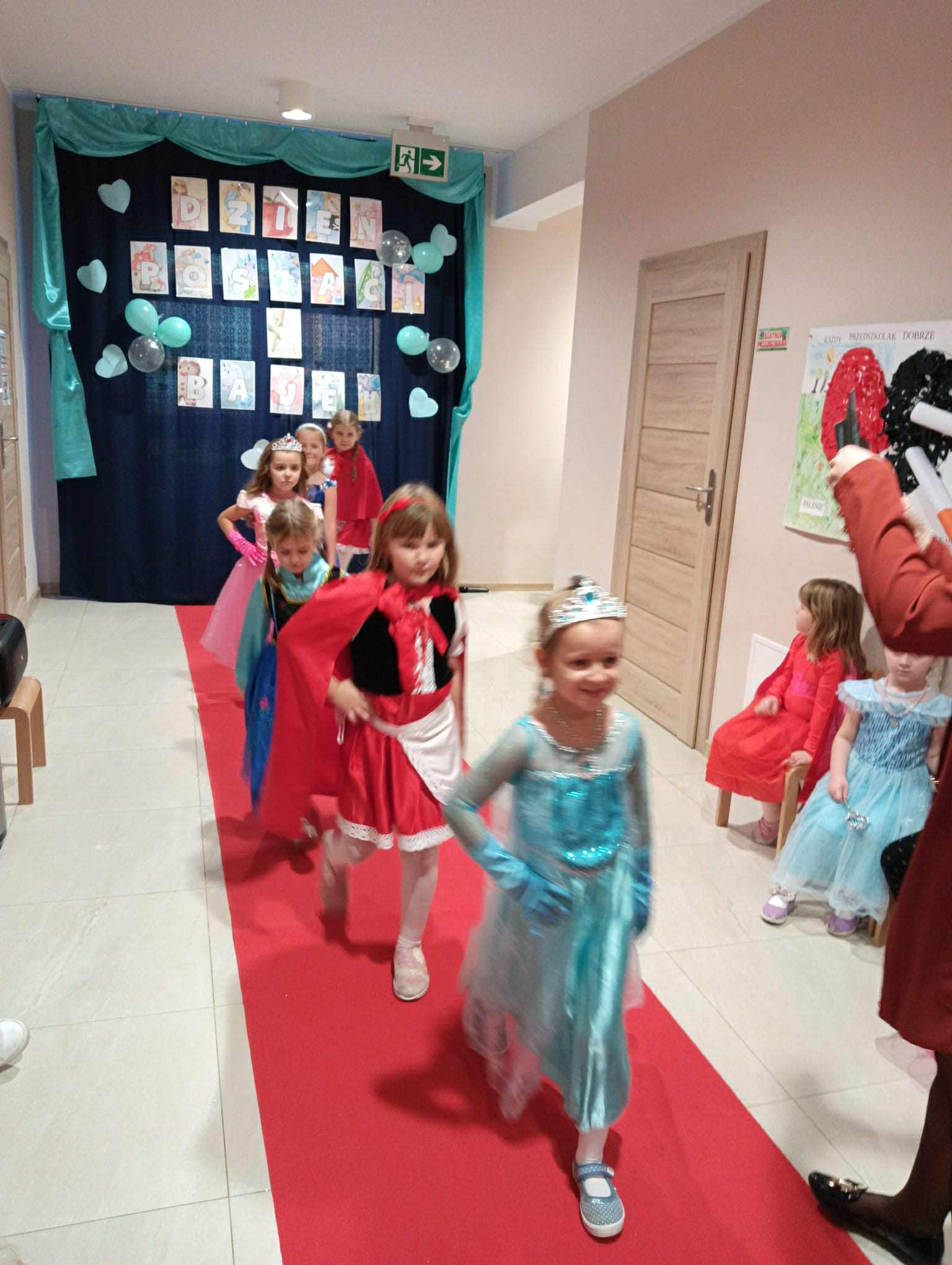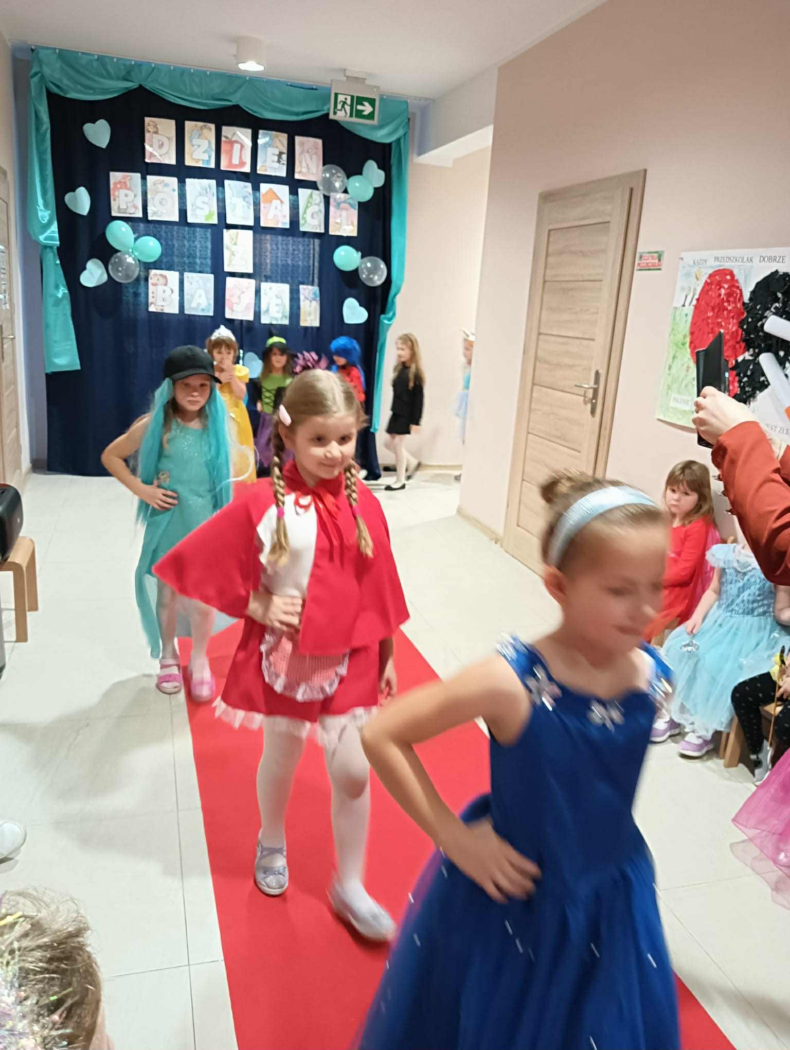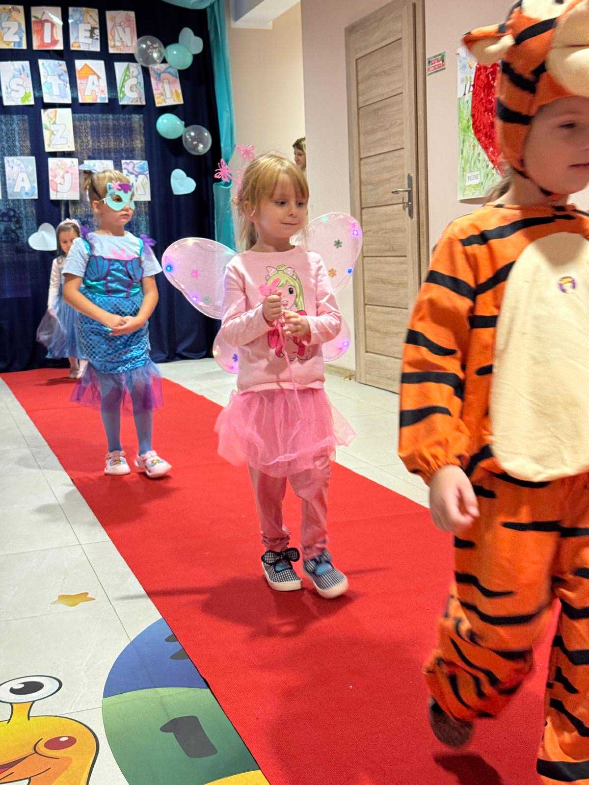 Jednym z najważniejszych punktów dnia był bajkowy spacer po czerwonym dywanie. Dzieci dumnie prezentowały swoje stroje i przebrania, czując się jak prawdziwe gwiazdy. Nie zabrakło błysku fleszy, uśmiechów oraz gromkich braw od rówieśników i wychowawców.