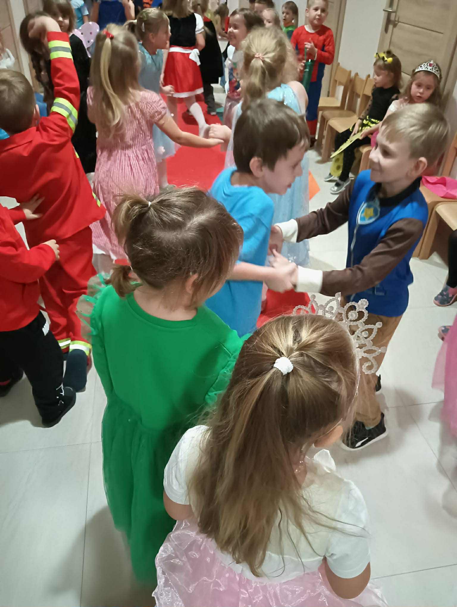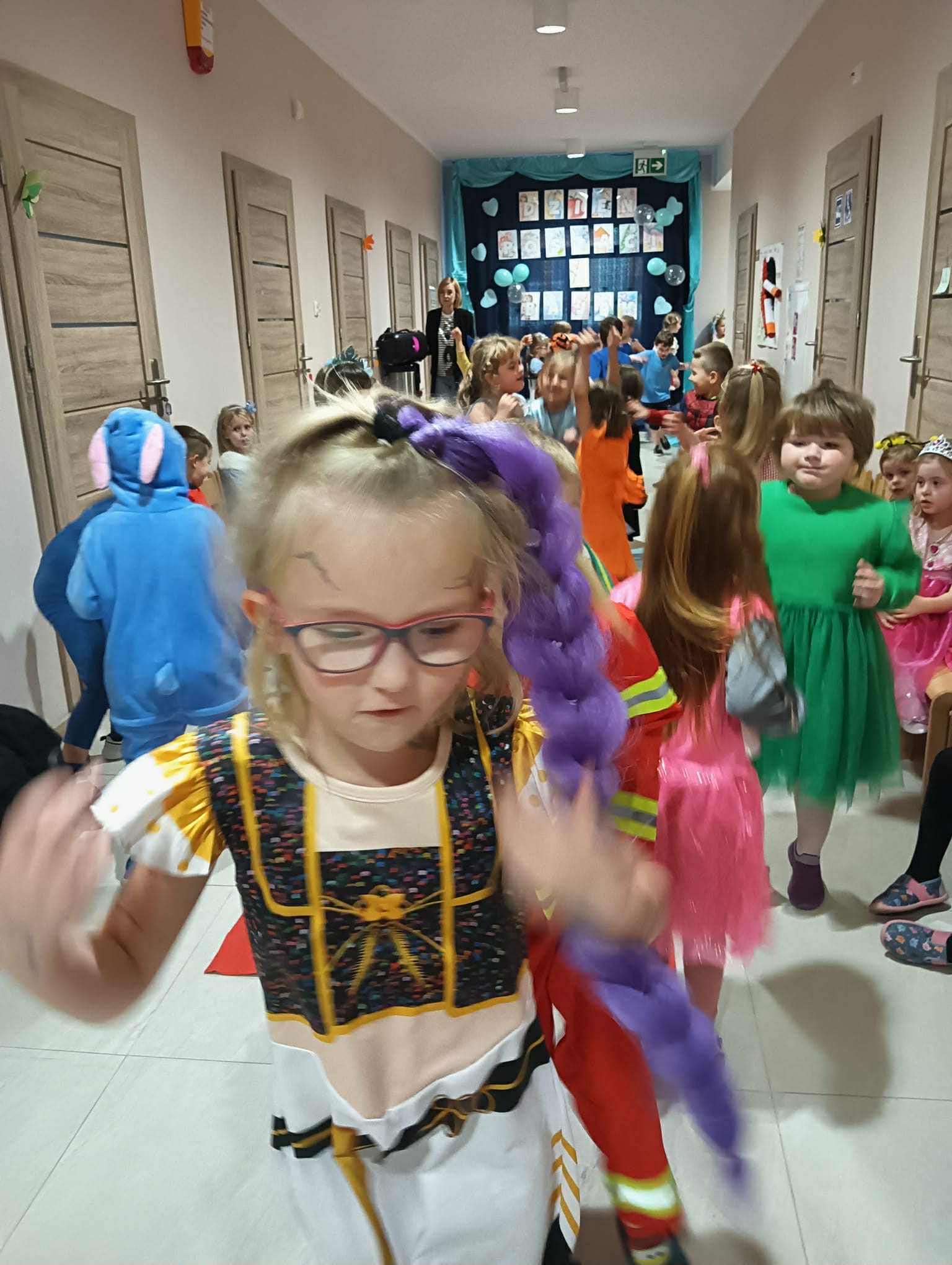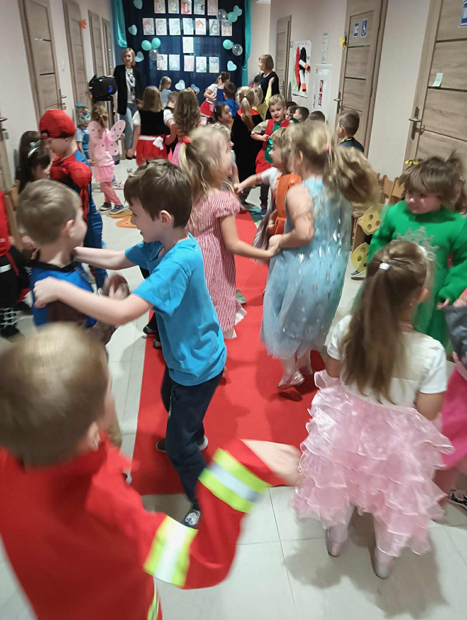 Po pokazie przyszedł czas na dyskotekę na przedszkolnym korytarzu. Wspólne tańce, zabawy muzyczne i radosne okrzyki sprawiły, że w przedszkolu panowała wyjątkowa, magiczna atmosfera.