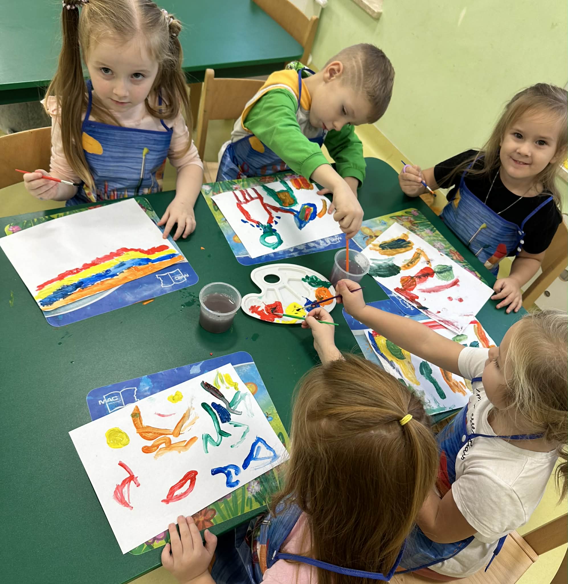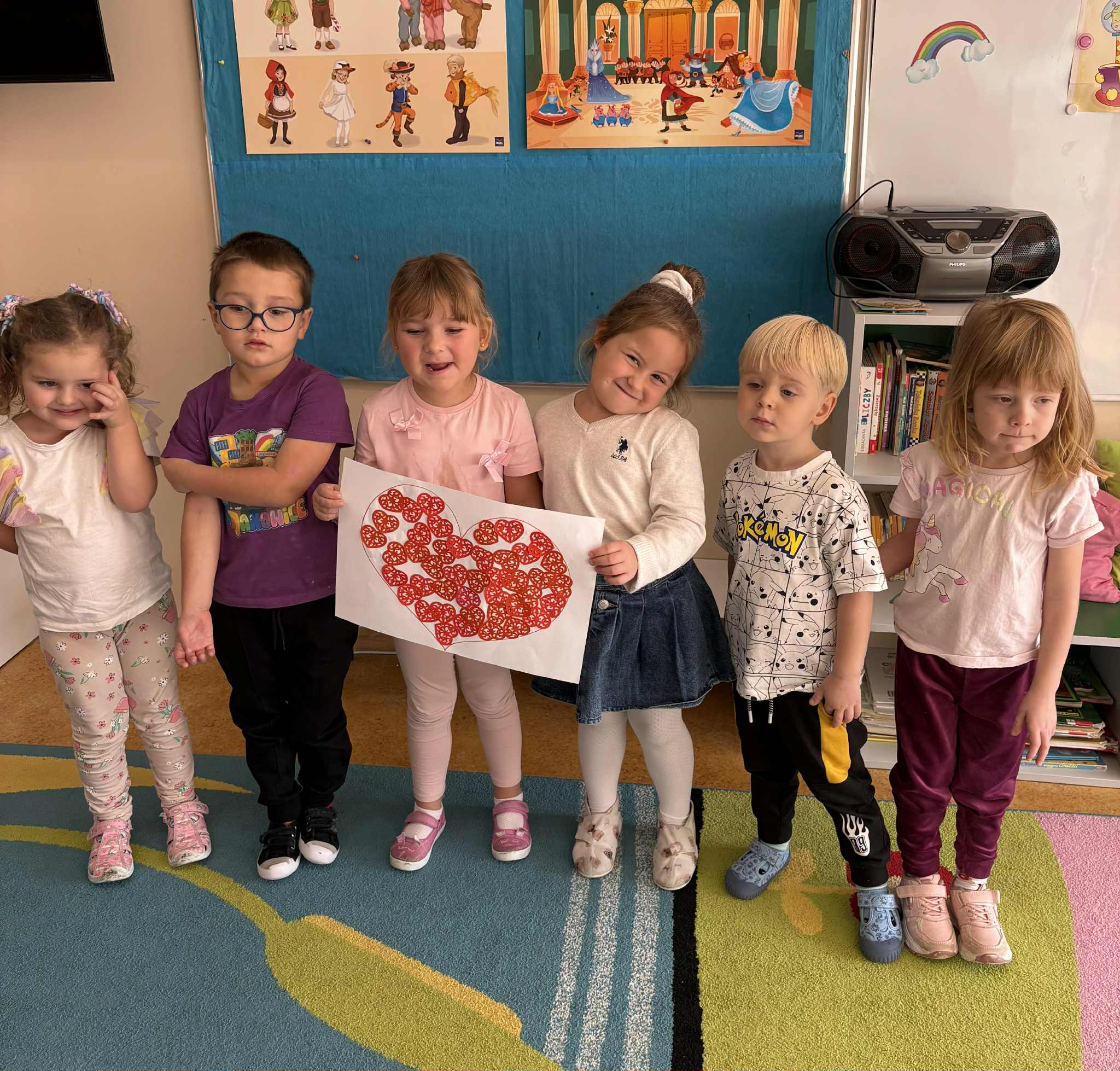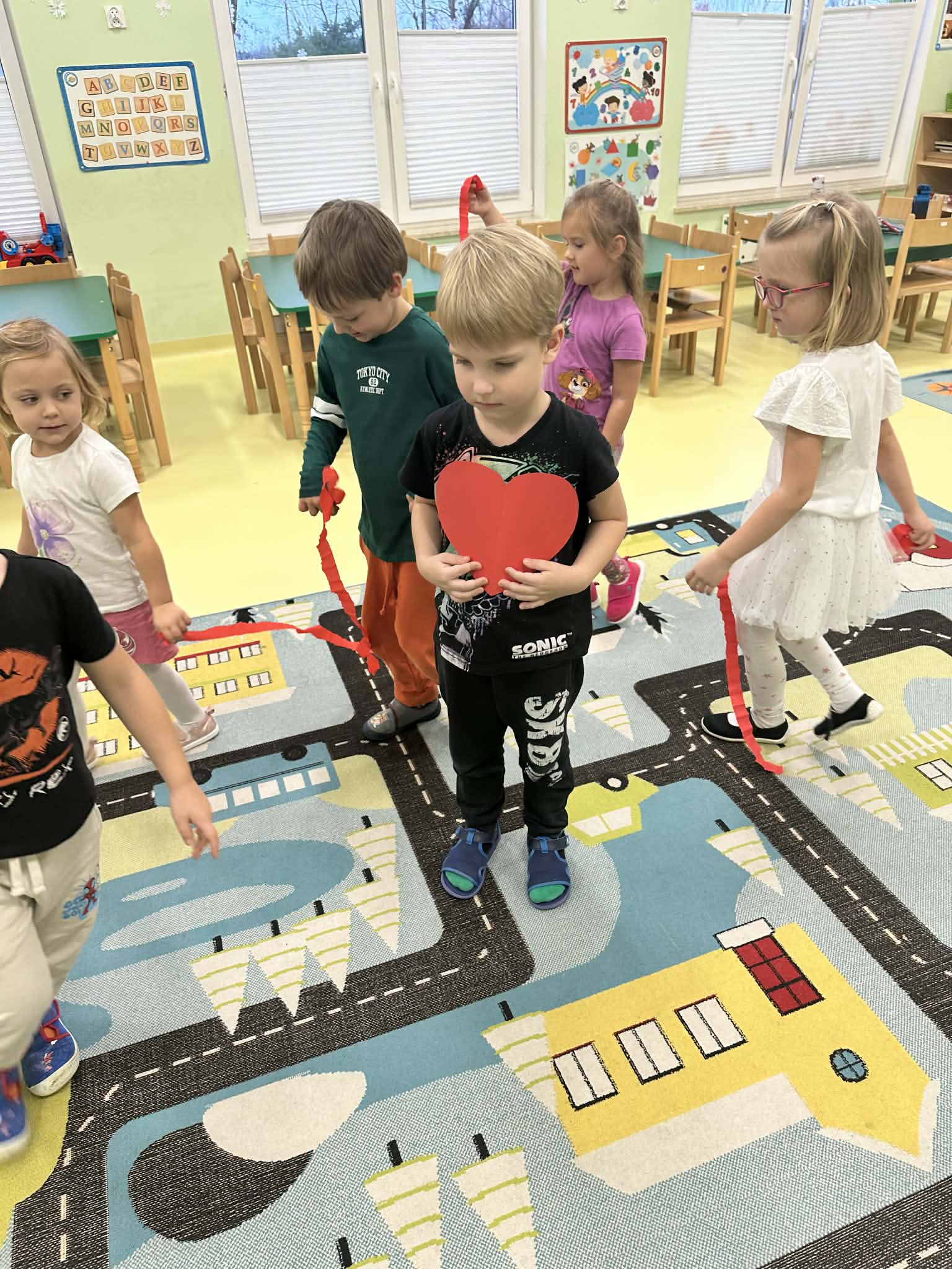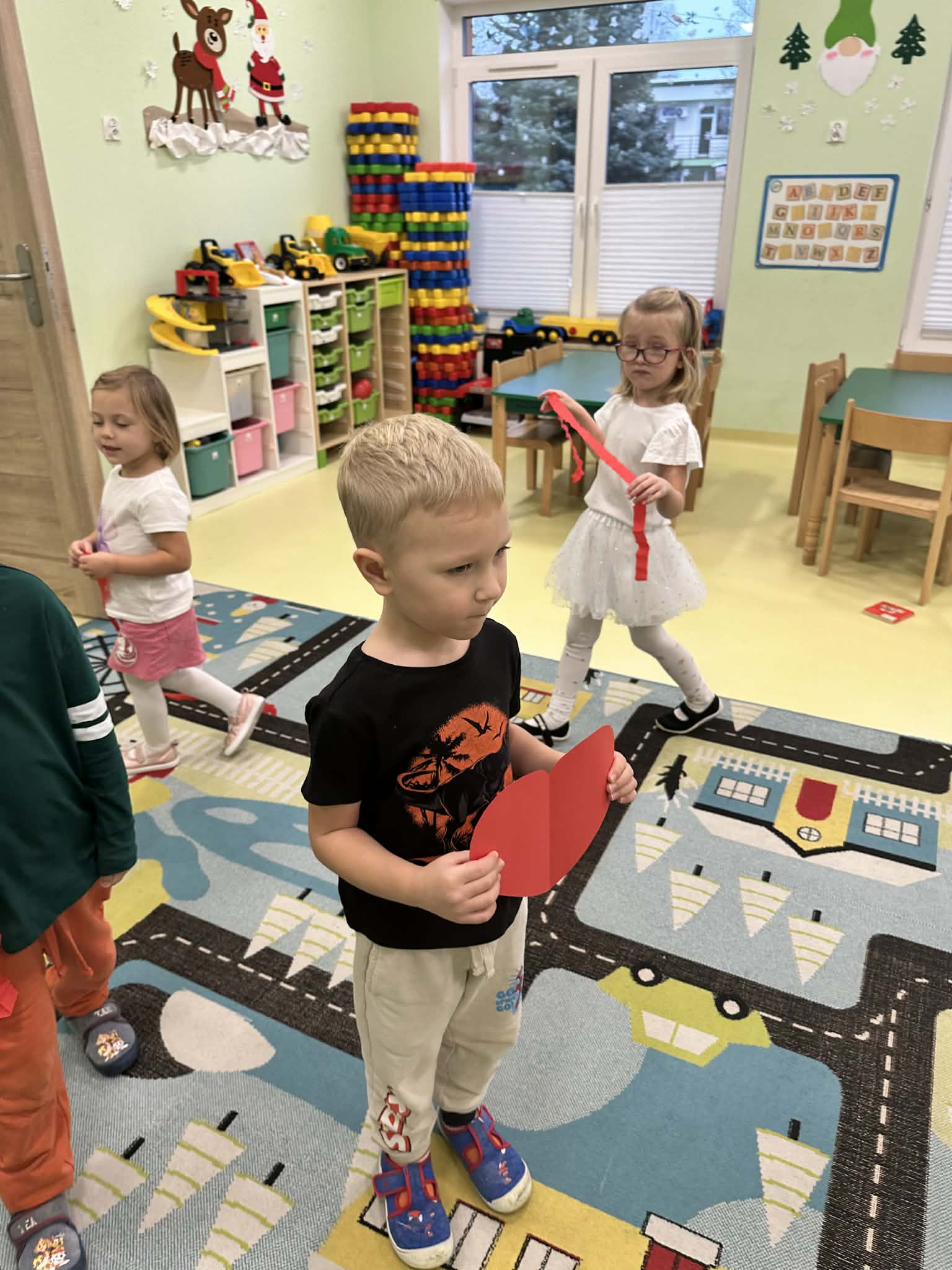 Dzieci z Przedszkola Samorządowego w Gorzkowicach wysłuchały drugiej bajki ,,Magiczne uczucie po występie ". Poznały nową emocję - wzruszenie. Przedszkolaki wykonały w grupach zadanie plastyczne ,,Serce wzruszeń" , malowały farbami słuchając utworu muzycznego oraz zatańczyły „ Taniec motyli” z chustami i taniec „Serce wzruszeń” ze wstążkami.