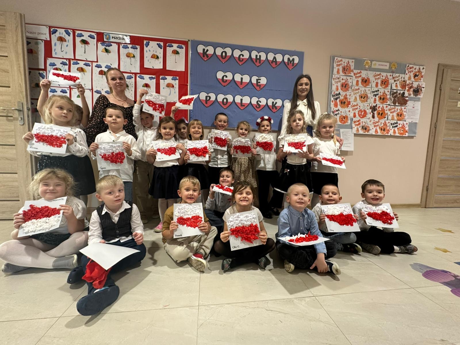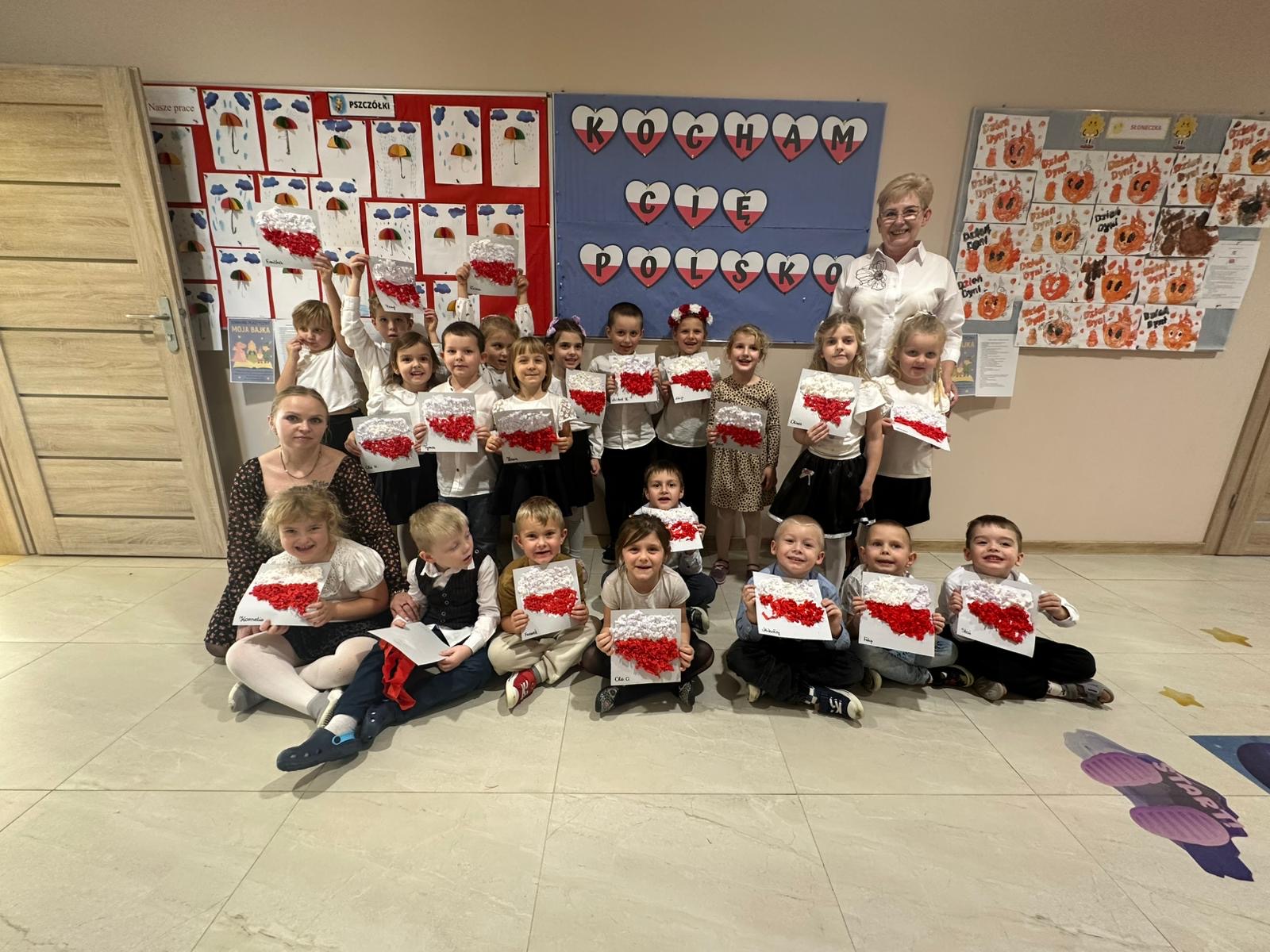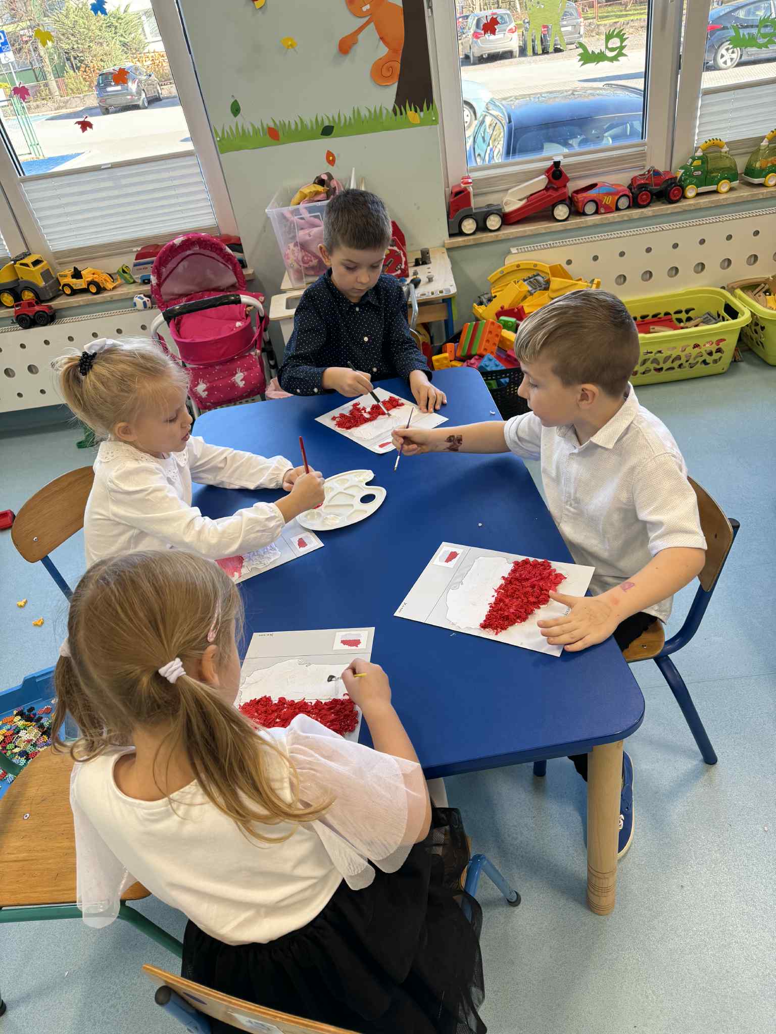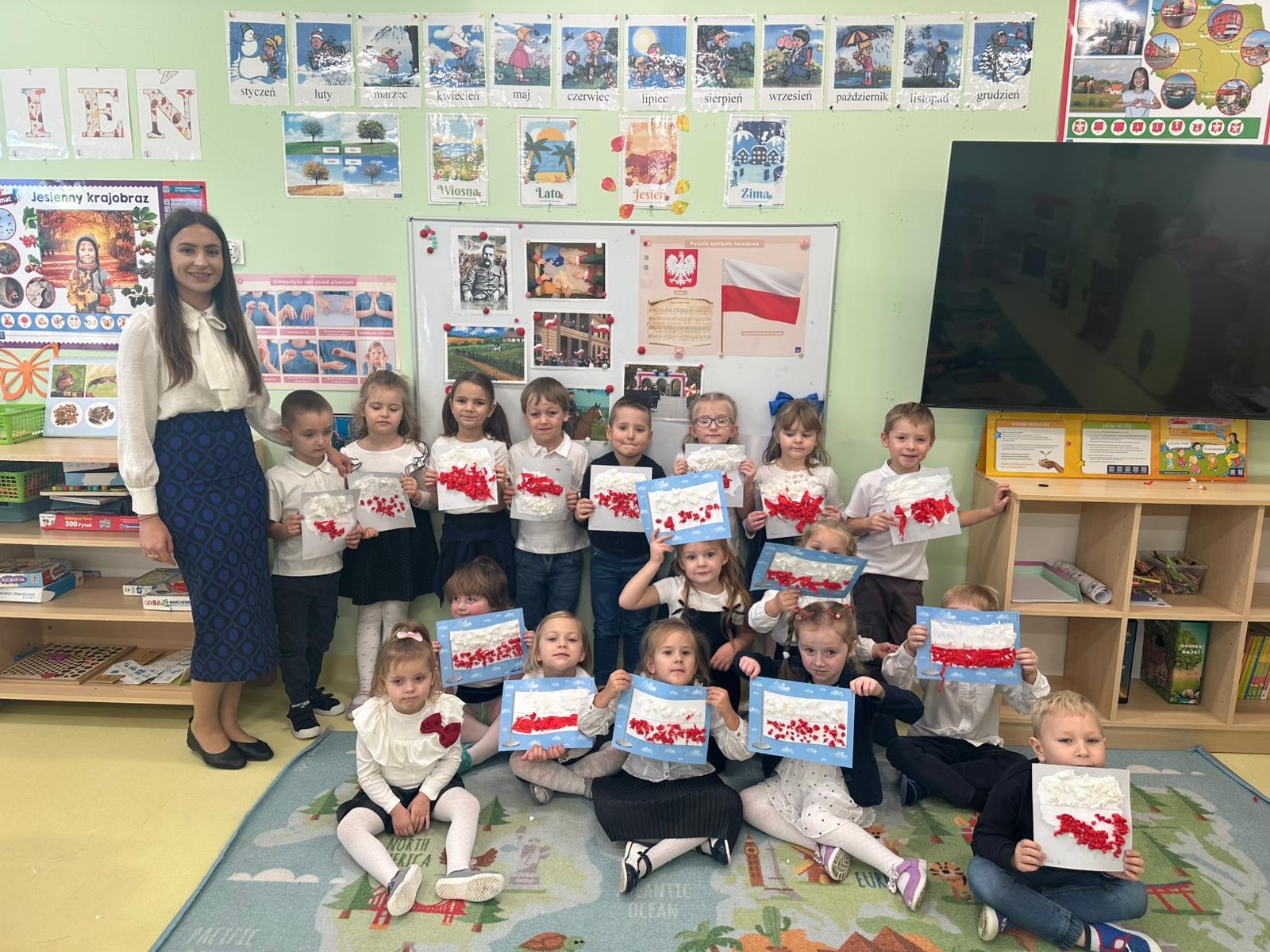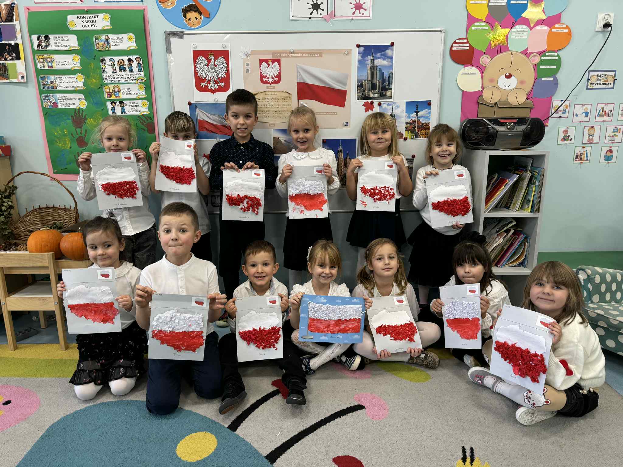 Przedszkolaki z wielkim zaangażowaniem malowały, wyklejały i tworzyły własne interpretacje polskich symboli – flagi i godła Polski. Dzięki takim działaniom dzieci w przystępny sposób uczą się historii swojego kraju, rozwijają poczucie tożsamości narodowej i dumy z bycia Polakiem.