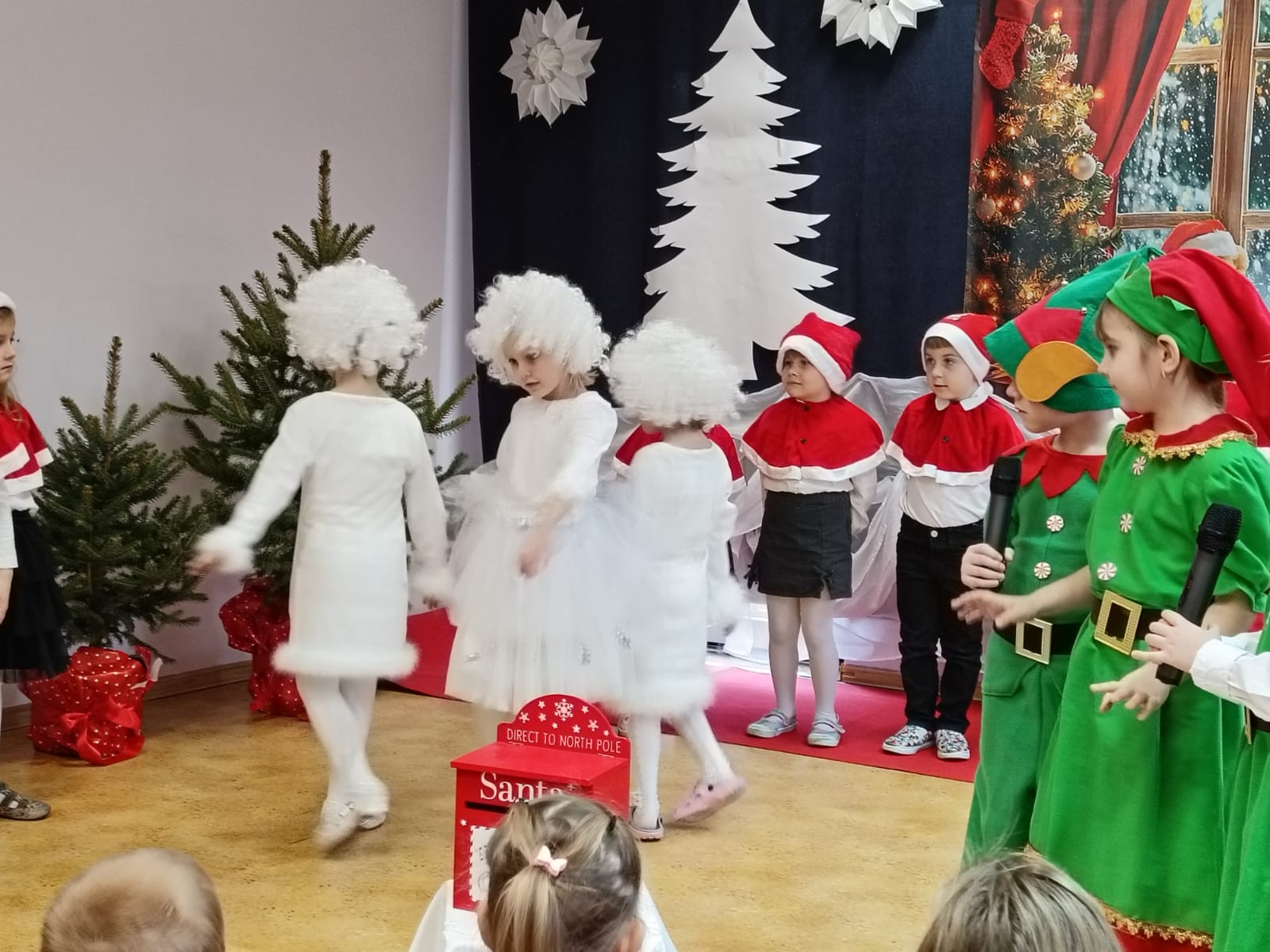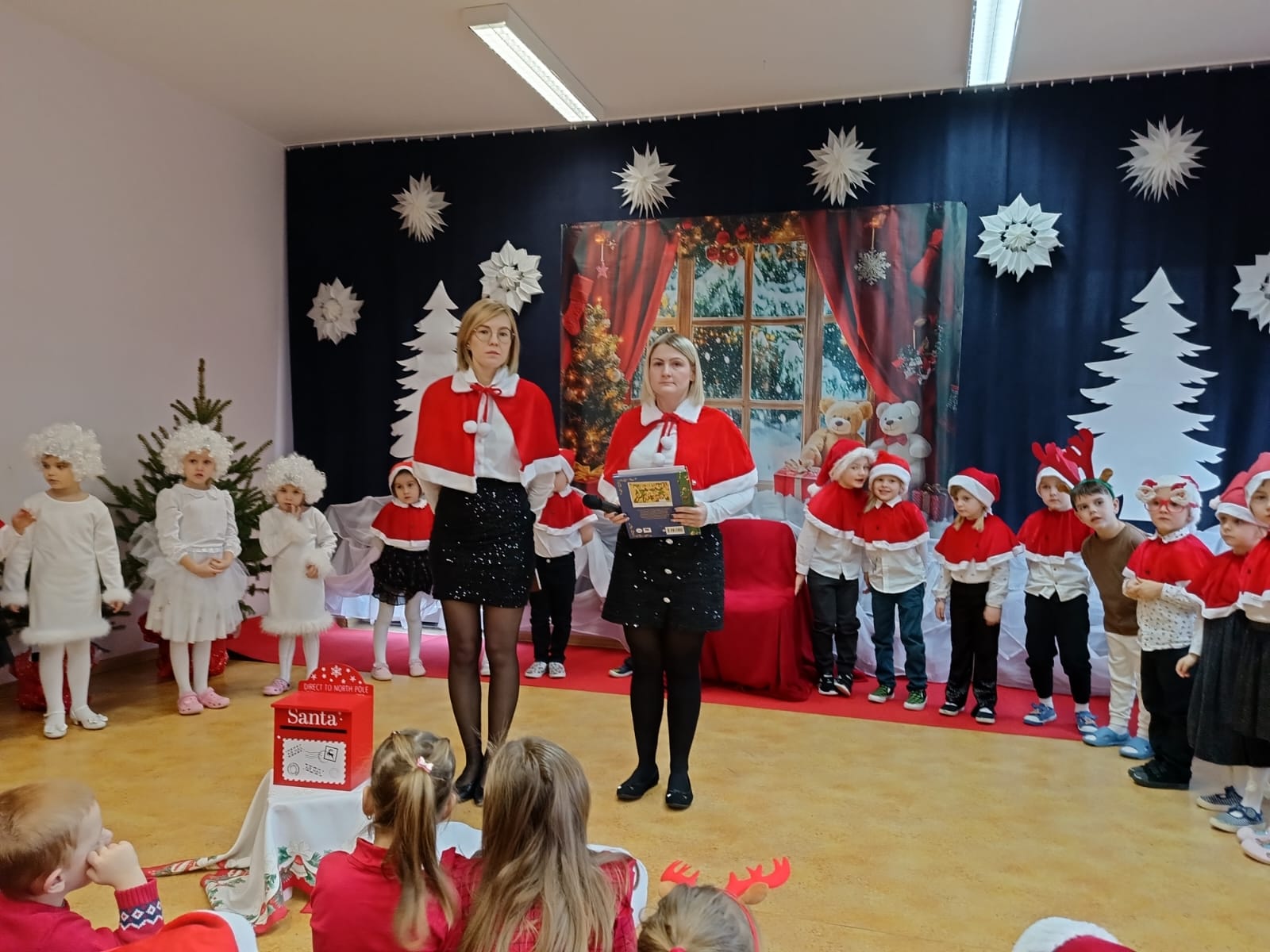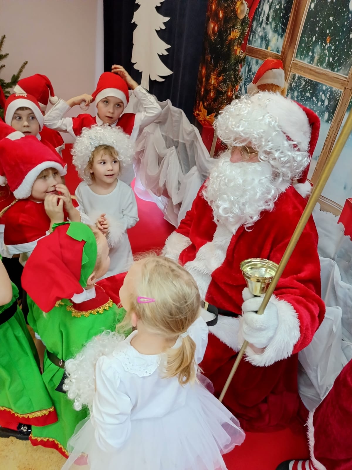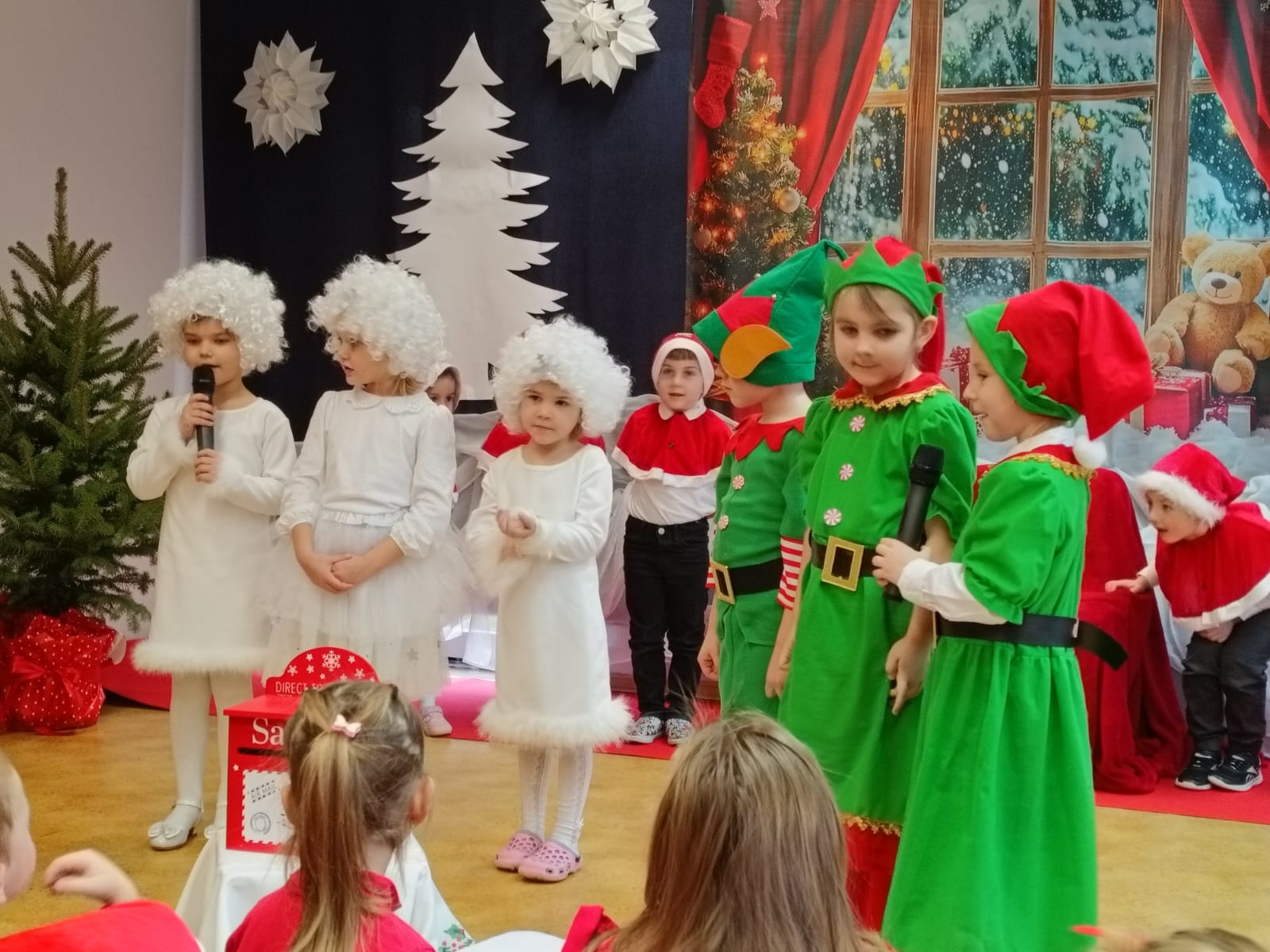 w przedświąteczny nastrój pięknymi piosenkami, wierszykami i odwagą sceniczną, która zachwyciła publiczność. Chwilę później w przedszkolu rozległ się dźwięk dzwoneczków