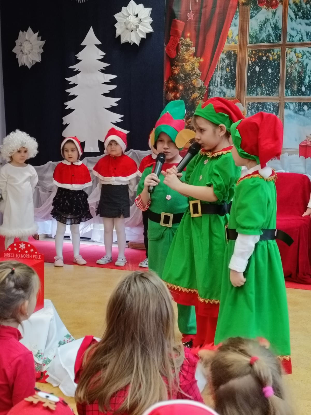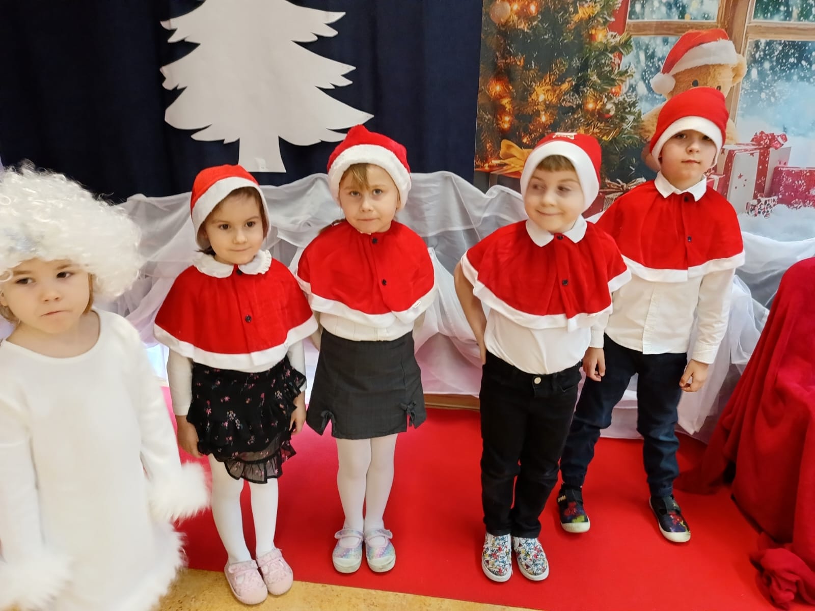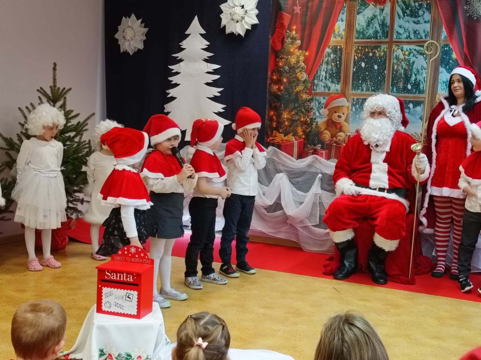 w przedświąteczny nastrój pięknymi piosenkami, wierszykami i odwagą sceniczną, która zachwyciła publiczność. Chwilę później w przedszkolu rozległ się dźwięk dzwoneczków