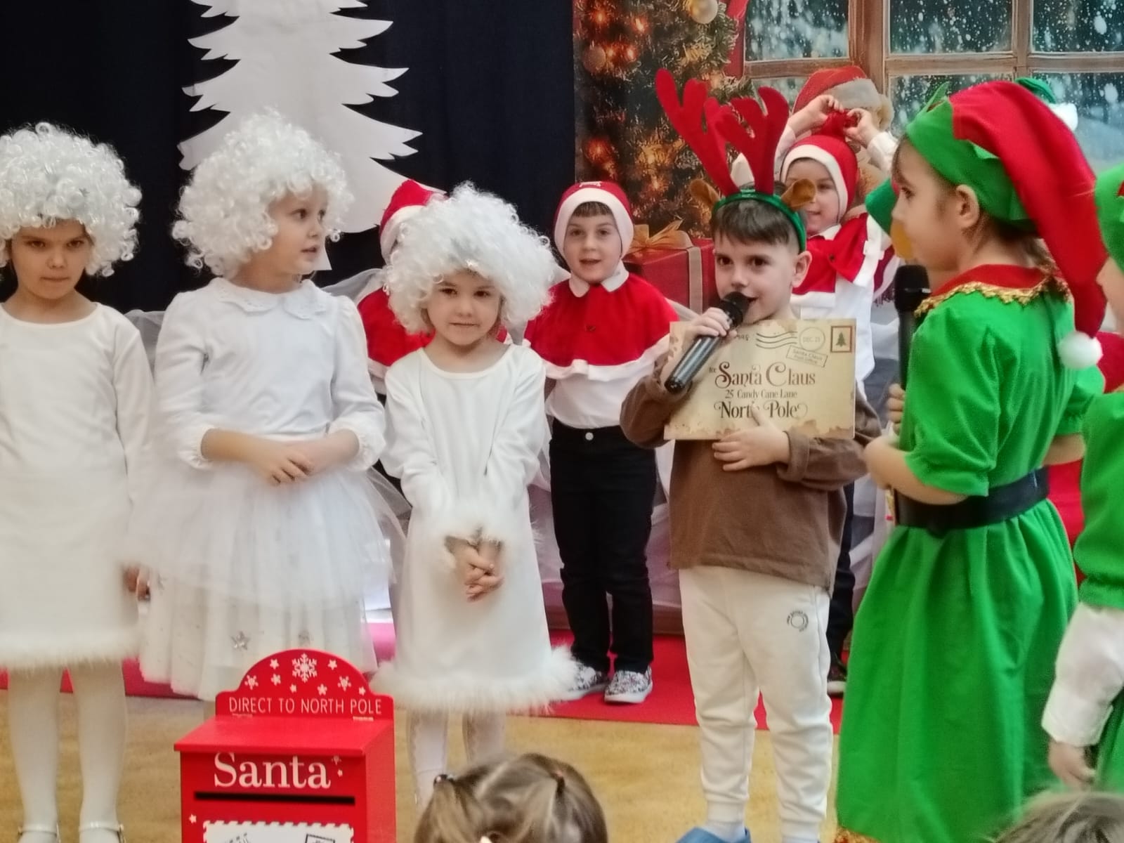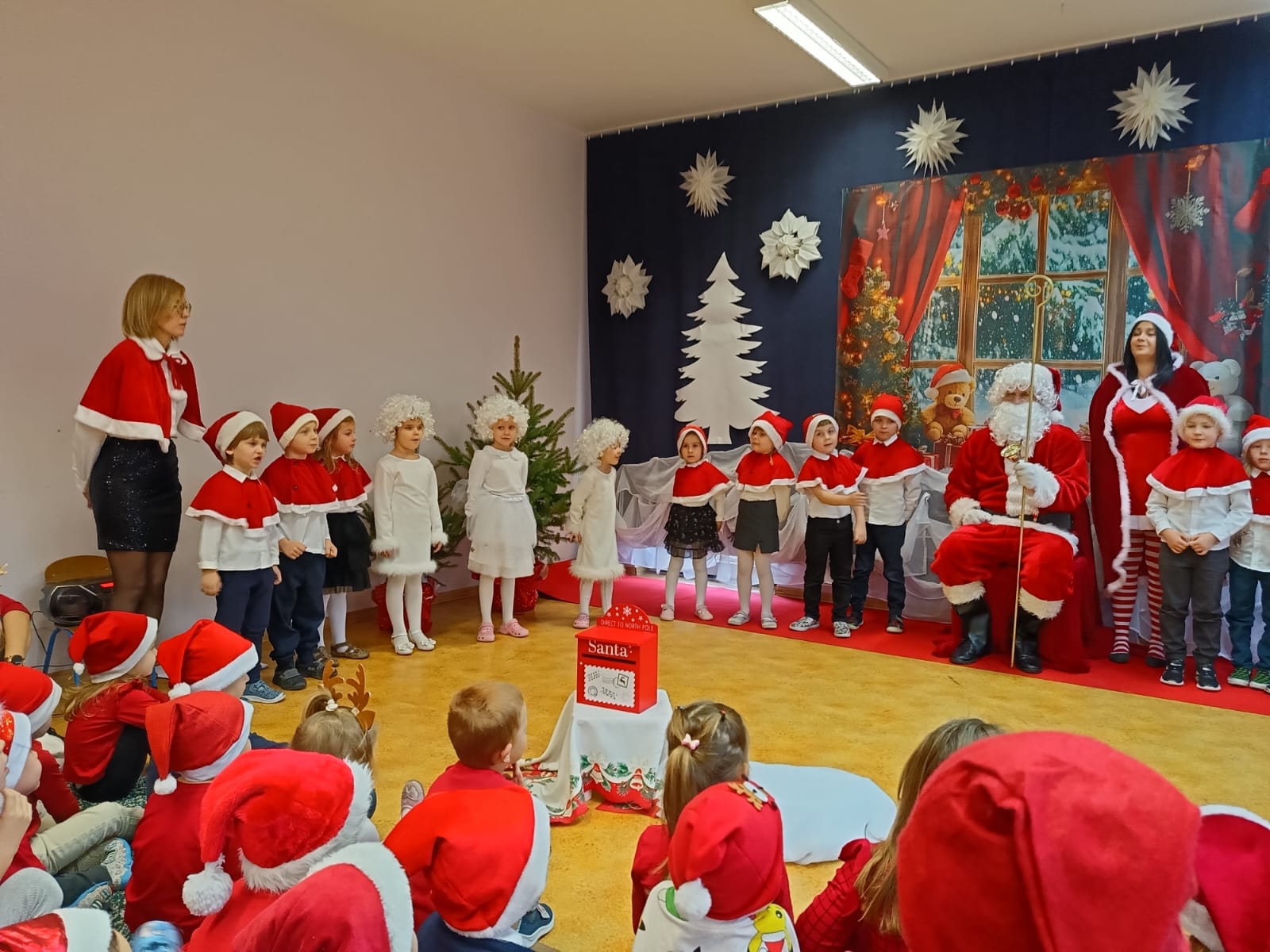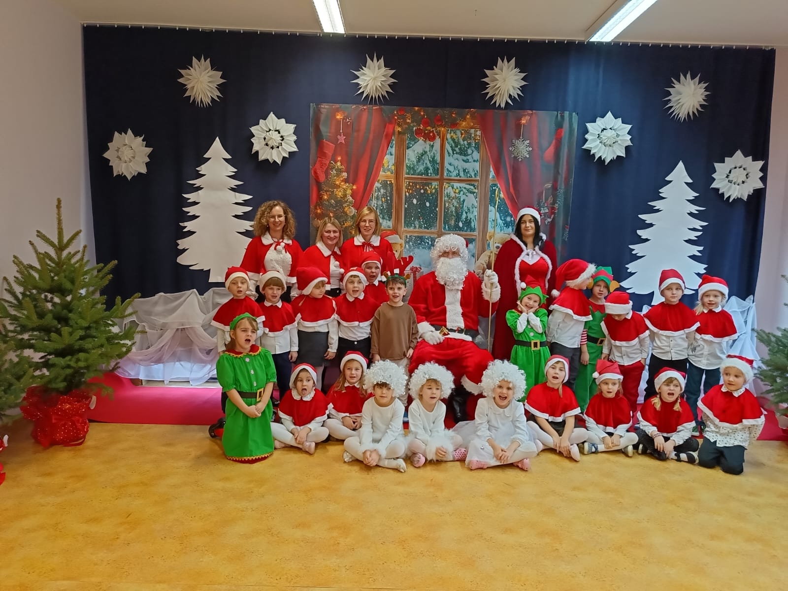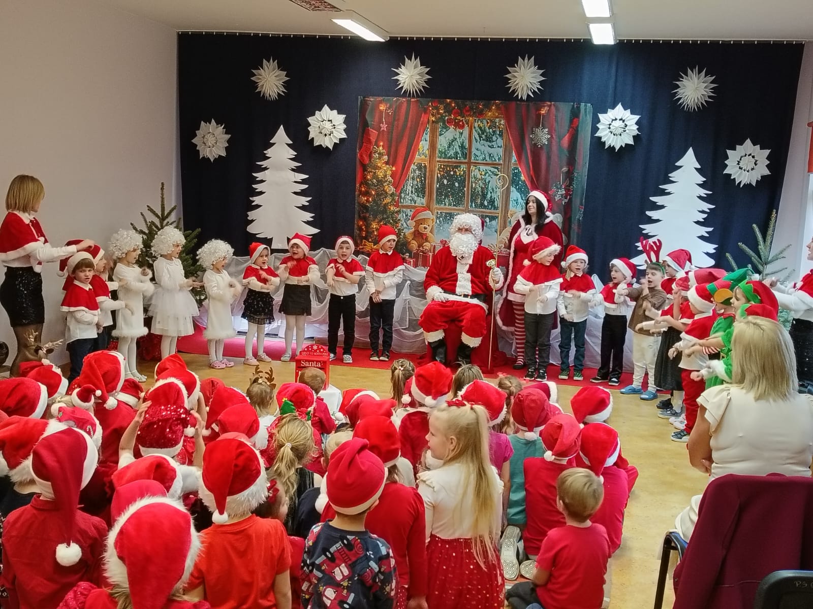 w przedświąteczny nastrój pięknymi piosenkami, wierszykami i odwagą sceniczną, która zachwyciła publiczność. Chwilę później w przedszkolu rozległ się dźwięk dzwoneczków