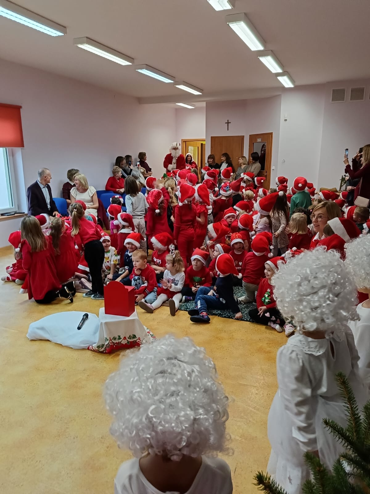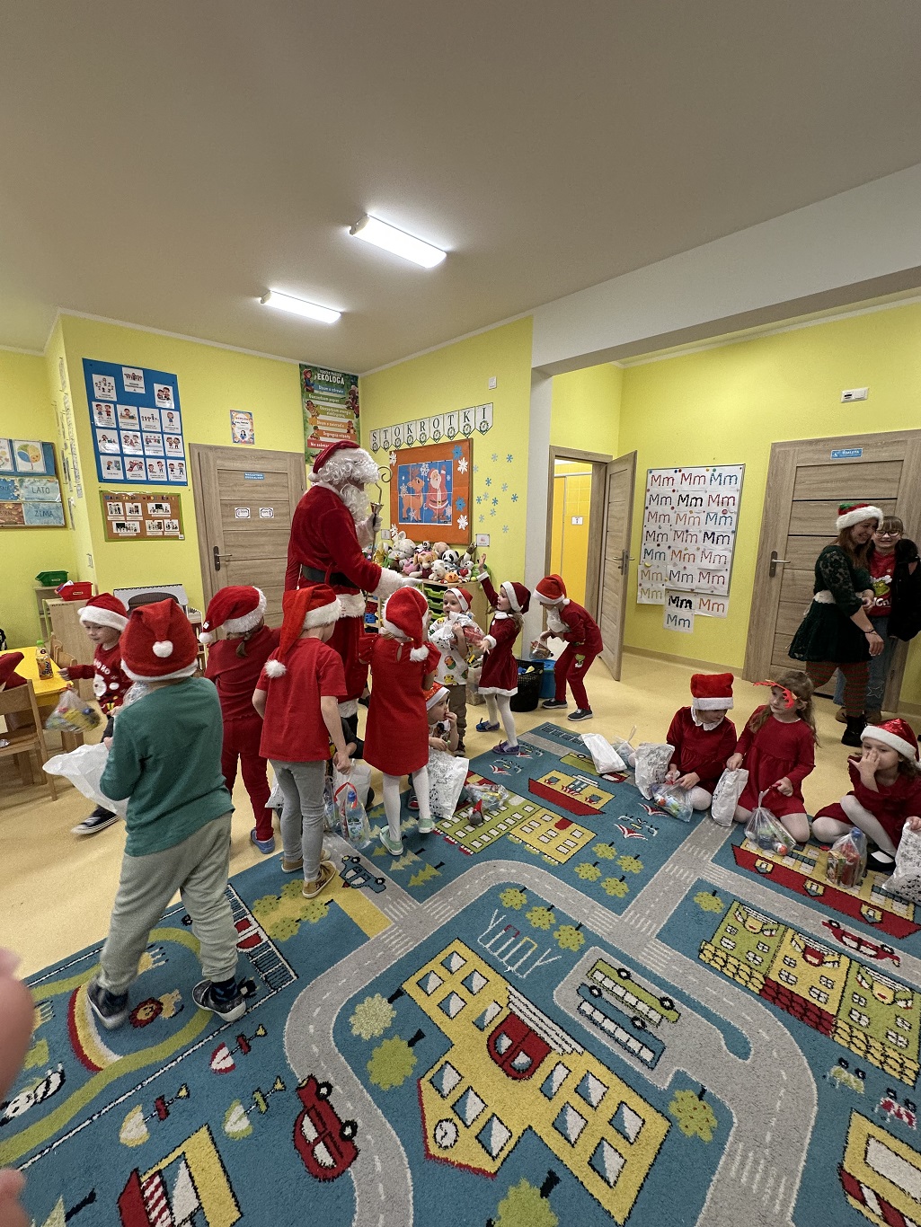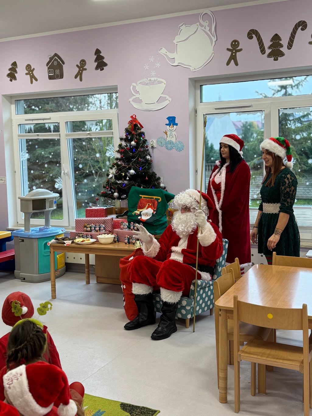 i ku ogromnej radości najmłodszych odwiedził nas Święty Mikołaj! Przechadzał się od grupy do grupy, zaglądał do sal, rozmawiał z dziećmi i z uśmiechem słuchał przygotowanych specjalnie dla niego występów. Maluchy były zachwycone możliwością spotkania z upragnionym gościem i chętnie dzieliły się z nim swoimi marzeniami. W tym wyjątkowym wydarzeniu uczestniczyli również:Wójt Gminy Gorzkowice Pan Alojzy Włodarczyk, Dyrektor Przedszkola Pani Magdalena Rutka, Kierownik Samorządowego Klubu Dziecięcego i Samorządowego Klubu Malucha w Gorzkowicach Pani Anna Jarosińska oraz Prezydium Rady Rodziców, którzy wspólnie z dziećmi przeżywali ten pełen ciepła dzień. Wójt obdarował przedszkolaków pięknymi prezentami, wywołując na ich twarzach jeszcze więcej radości. Dodatkowe upominki, które otrzymały dzieci, zostały ufundowane przez Radę Rodziców – za co serdecznie dziękujemy. Dzięki ich wsparciu każda grupa mogła cieszyć się świąteczną niespodzianką. Cała uroczystość przebiegała w atmosferze uśmiechu, życzliwości i świątecznej magii, która na długo pozostanie w sercach naszych przedszkolaków. To był naprawdę wyjątkowy dzień – dzień, w którym spełniały się dziecięce marzenia.