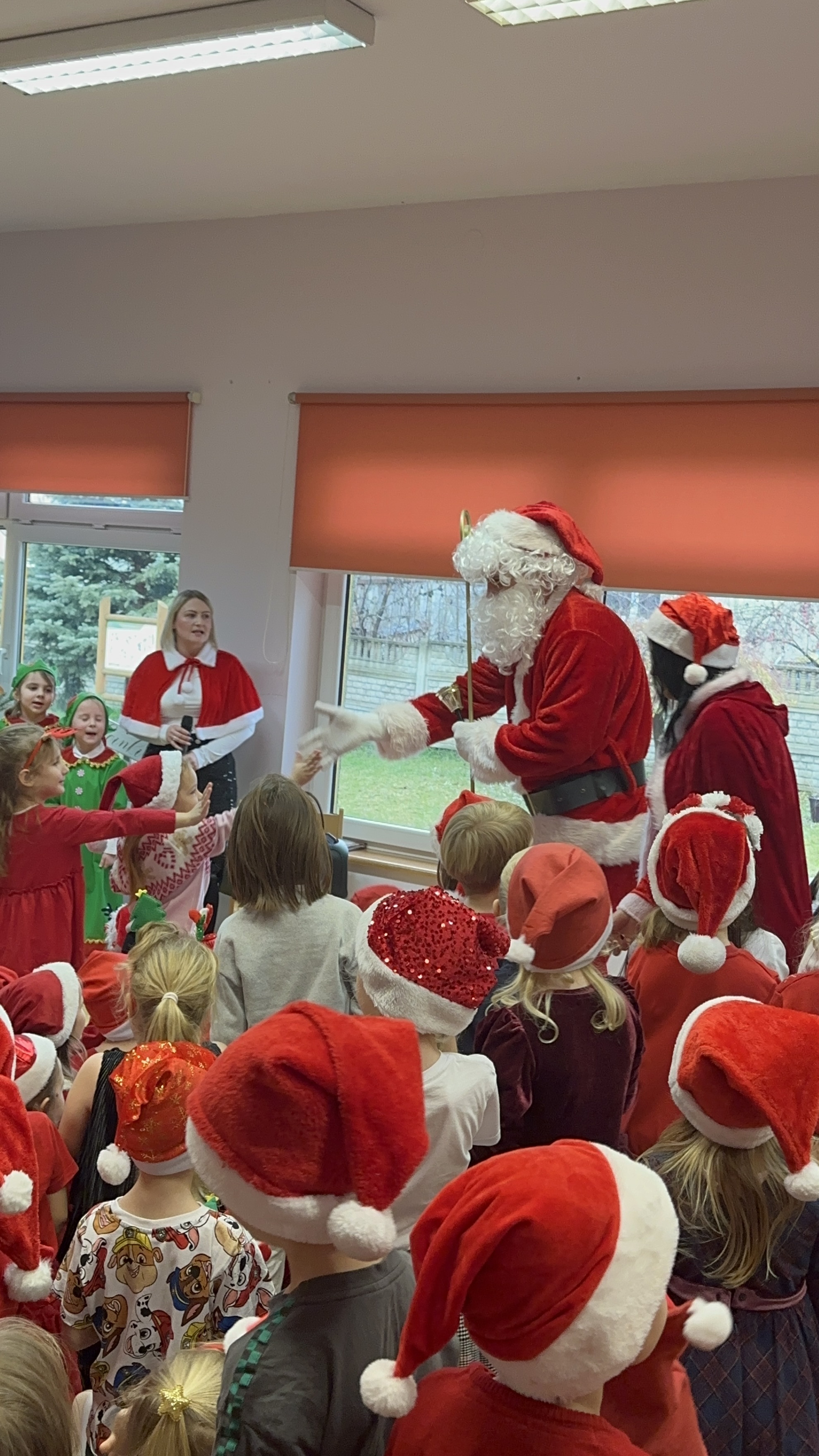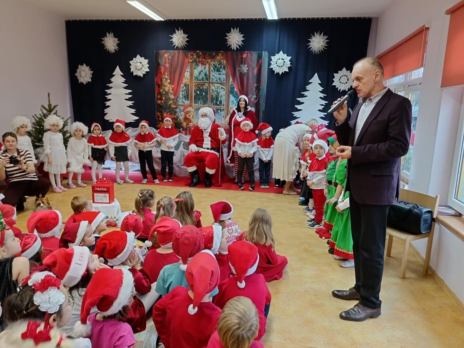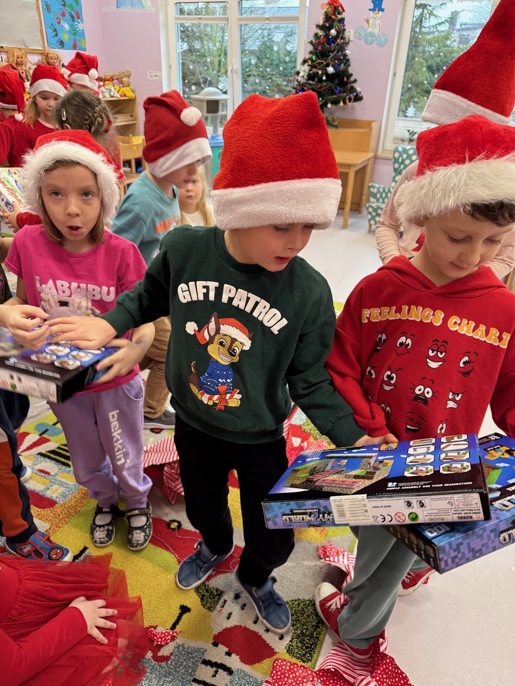 i ku ogromnej radości najmłodszych odwiedził nas Święty Mikołaj! Przechadzał się od grupy do grupy, zaglądał do sal, rozmawiał z dziećmi i z uśmiechem słuchał przygotowanych specjalnie dla niego występów. Maluchy były zachwycone możliwością spotkania z upragnionym gościem i chętnie dzieliły się z nim swoimi marzeniami. W tym wyjątkowym wydarzeniu uczestniczyli również:Wójt Gminy Gorzkowice Pan Alojzy Włodarczyk, Dyrektor Przedszkola Pani Magdalena Rutka, Kierownik Samorządowego Klubu Dziecięcego i Samorządowego Klubu Malucha w Gorzkowicach Pani Anna Jarosińska oraz Prezydium Rady Rodziców, którzy wspólnie z dziećmi przeżywali ten pełen ciepła dzień. Wójt obdarował przedszkolaków pięknymi prezentami, wywołując na ich twarzach jeszcze więcej radości. Dodatkowe upominki, które otrzymały dzieci, zostały ufundowane przez Radę Rodziców – za co serdecznie dziękujemy. Dzięki ich wsparciu każda grupa mogła cieszyć się świąteczną niespodzianką. Cała uroczystość przebiegała w atmosferze uśmiechu, życzliwości i świątecznej magii, która na długo pozostanie w sercach naszych przedszkolaków. To był naprawdę wyjątkowy dzień – dzień, w którym spełniały się dziecięce marzenia.