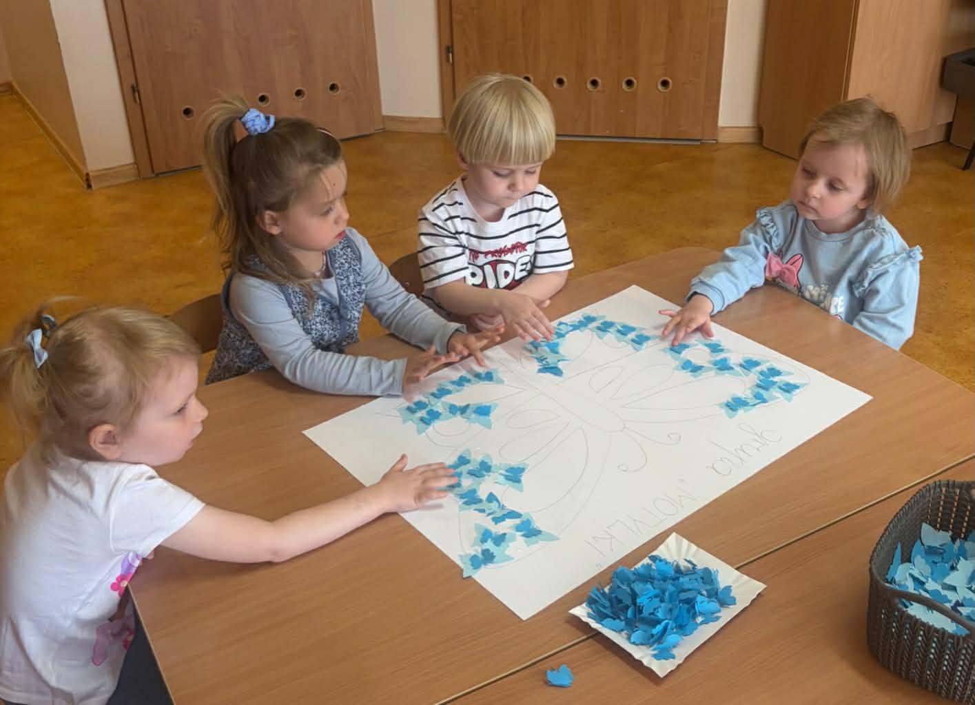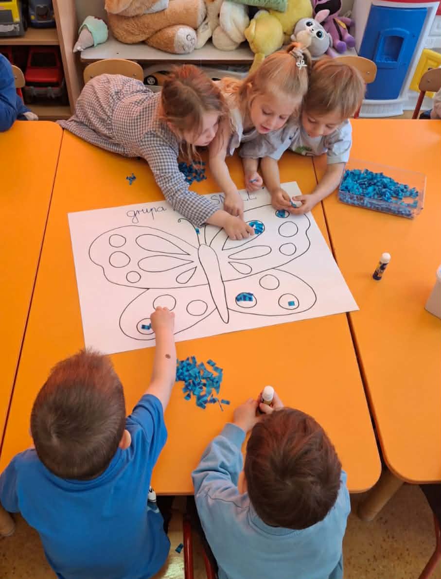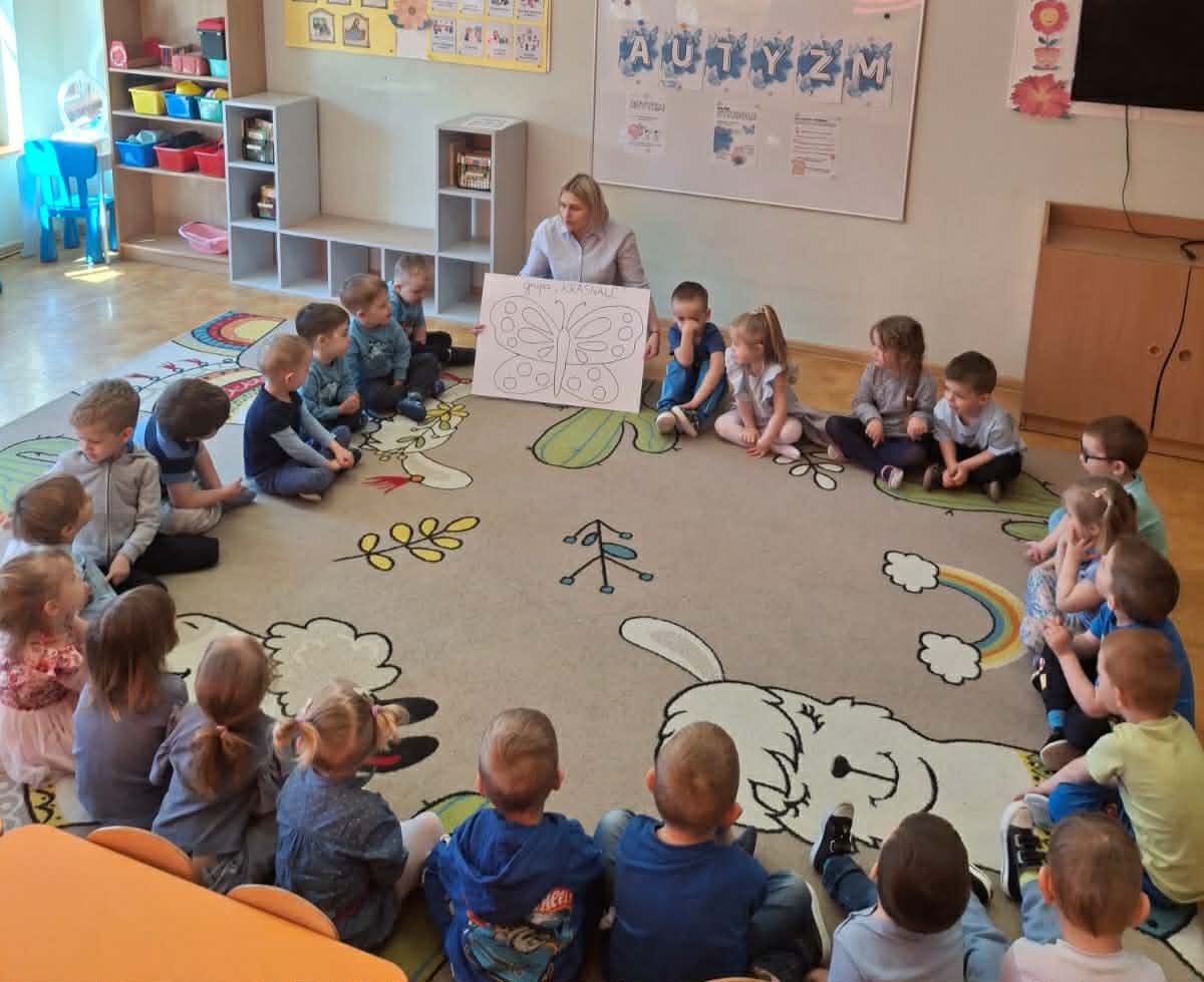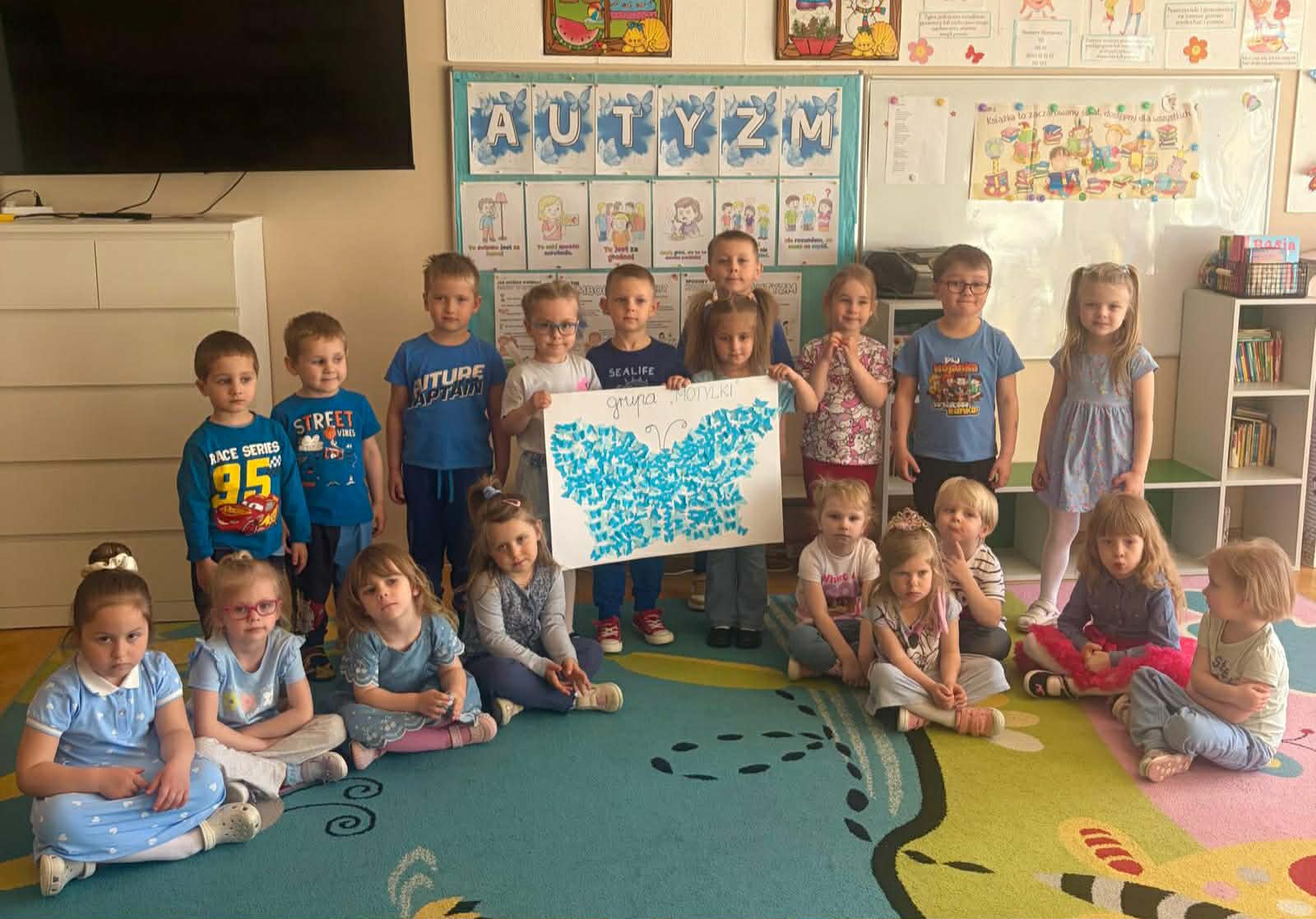 Ważnym elementem dzisiejszego dnia było również wykonanie prac plastycznych. Wszystkie grupy stworzyły piękne, niebieskie motyle – symbol solidarności, zrozumienia i wsparcia dla osób z autyzmem. Powstałe prace stały się nie tylko wyrazem kreatywności dzieci, ale także ważnym przekazem budującym świadomość i wrażliwość społeczną już od najmłodszych lat.