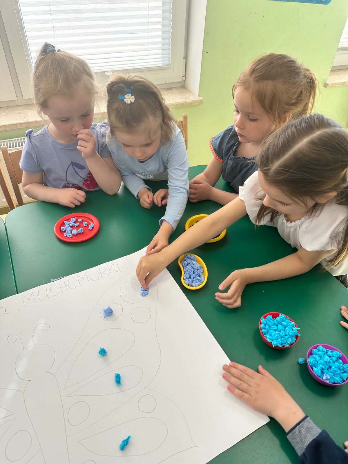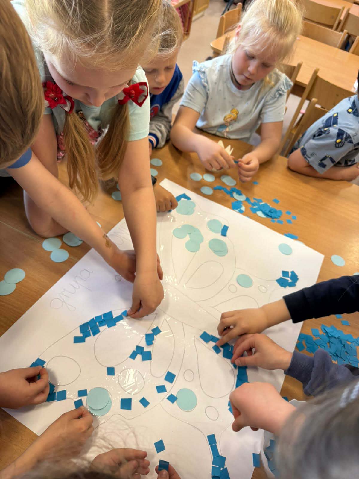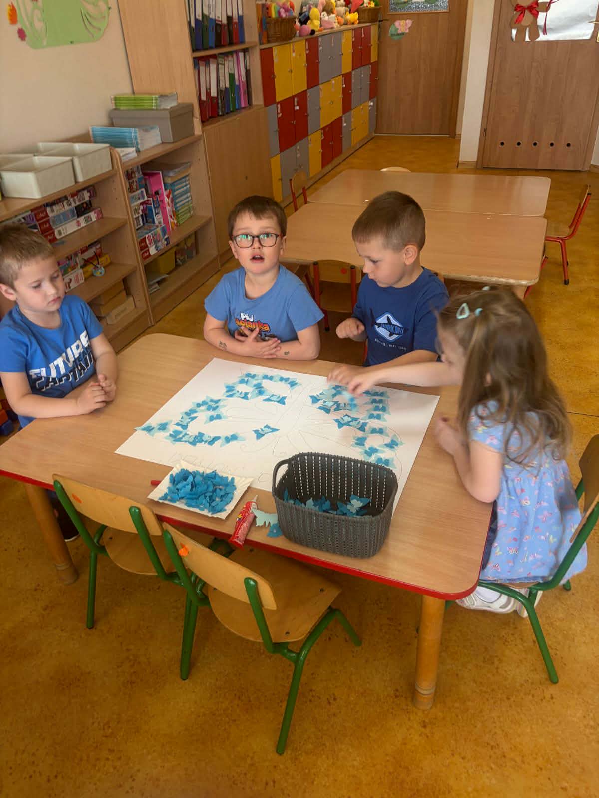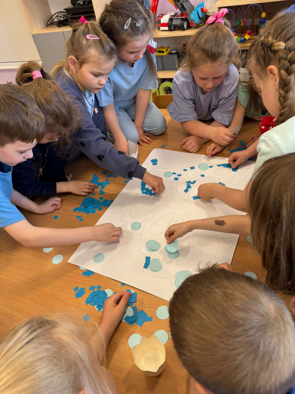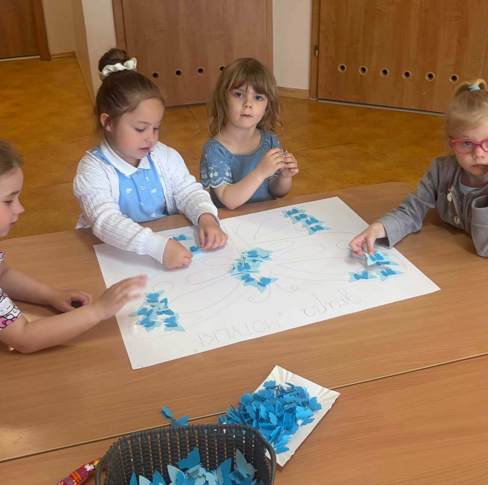 Ważnym elementem dzisiejszego dnia było również wykonanie prac plastycznych. Wszystkie grupy stworzyły piękne, niebieskie motyle – symbol solidarności, zrozumienia i wsparcia dla osób z autyzmem. Powstałe prace stały się nie tylko wyrazem kreatywności dzieci, ale także ważnym przekazem budującym świadomość i wrażliwość społeczną już od najmłodszych lat.