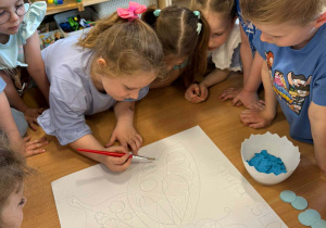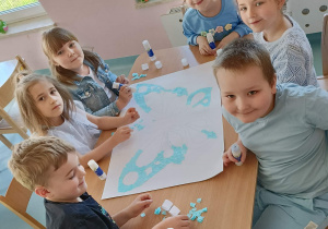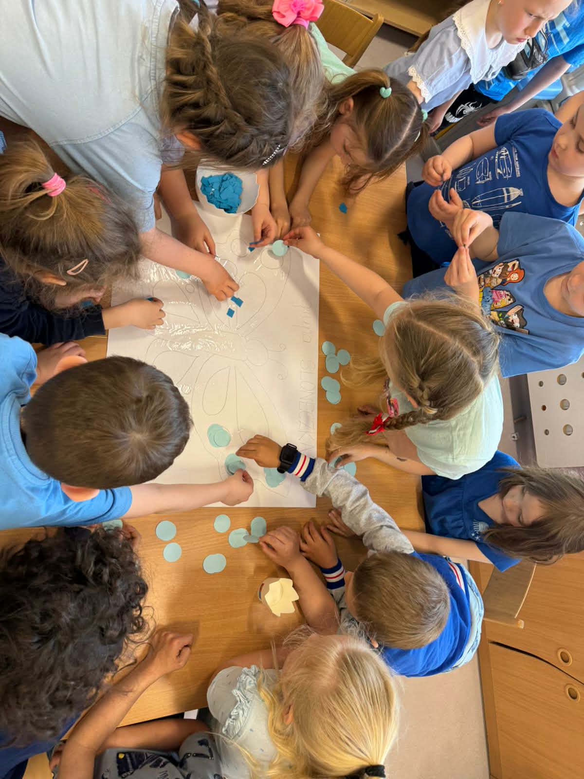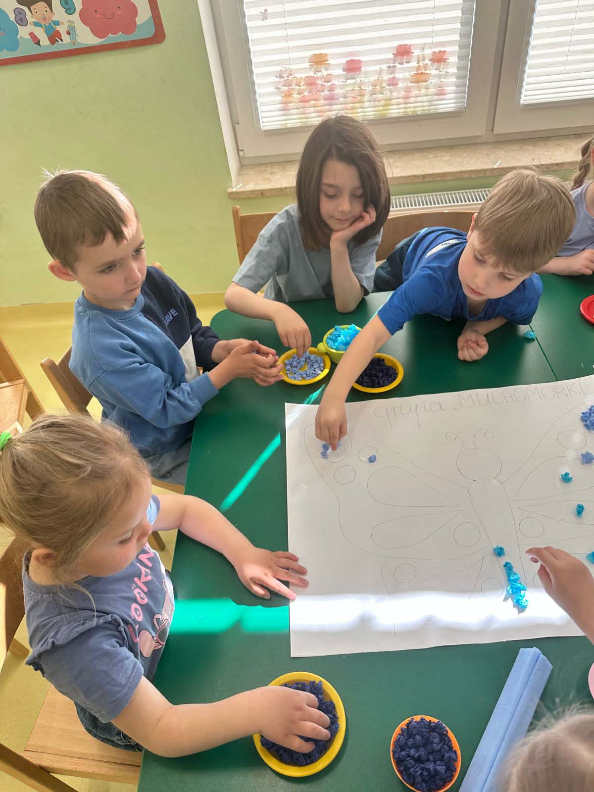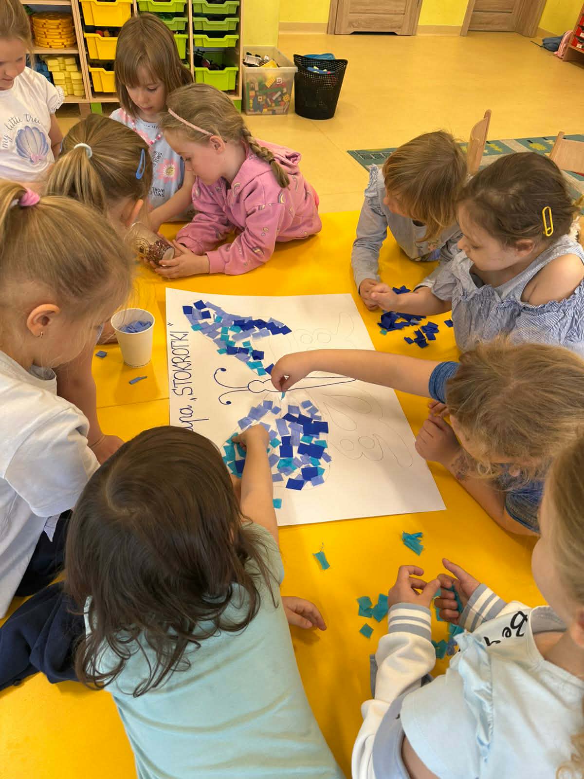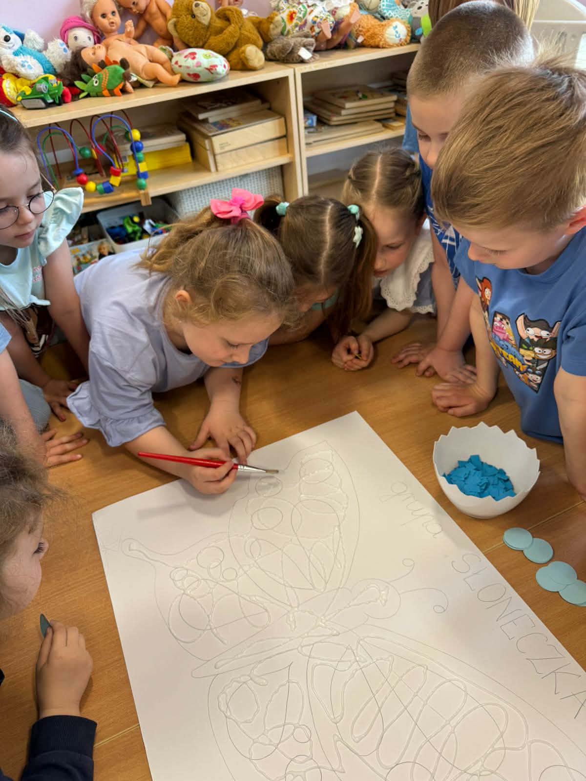 Ważnym elementem dzisiejszego dnia było również wykonanie prac plastycznych. Wszystkie grupy stworzyły piękne, niebieskie motyle – symbol solidarności, zrozumienia i wsparcia dla osób z autyzmem. Powstałe prace stały się nie tylko wyrazem kreatywności dzieci, ale także ważnym przekazem budującym świadomość i wrażliwość społeczną już od najmłodszych lat.