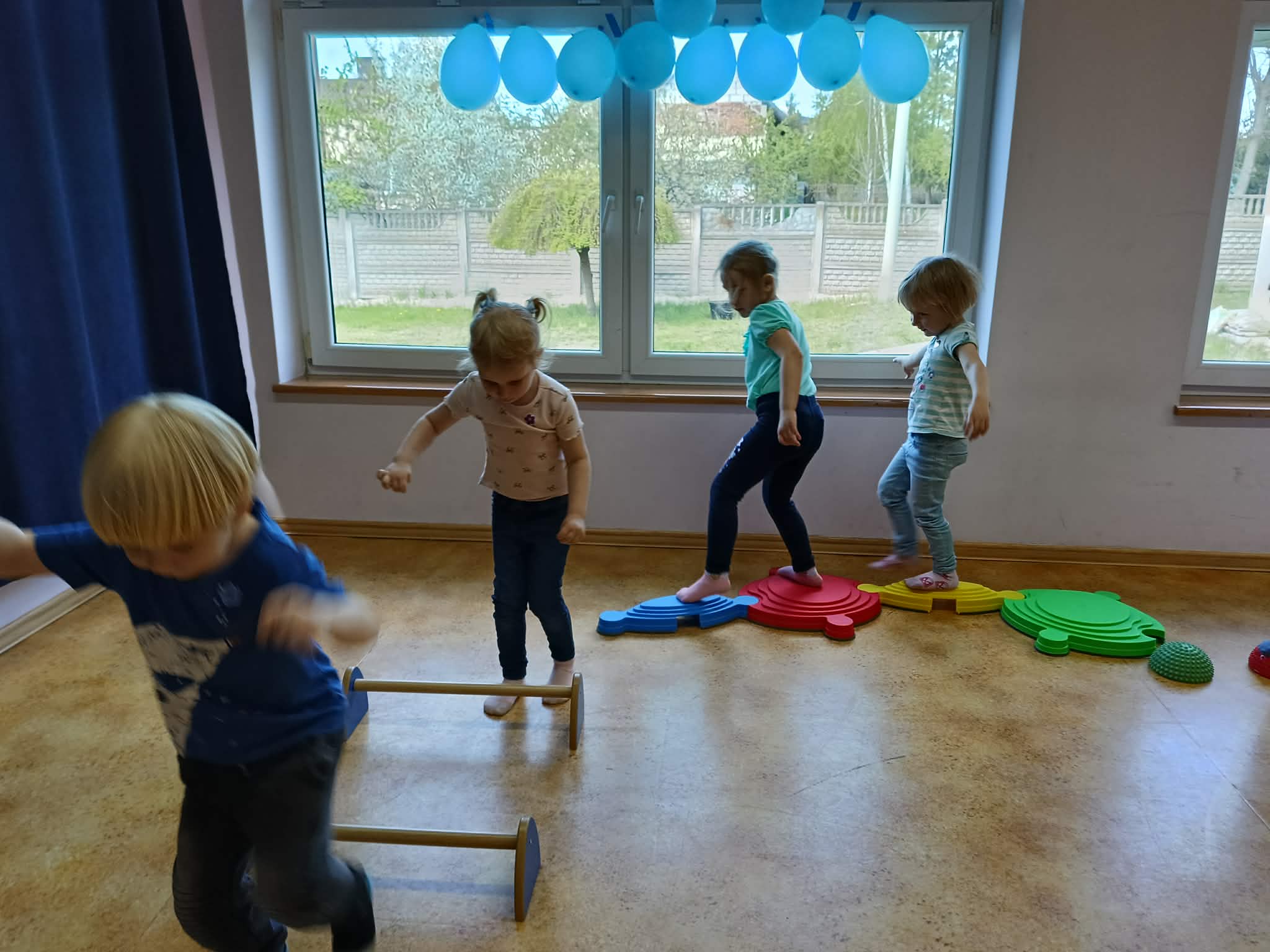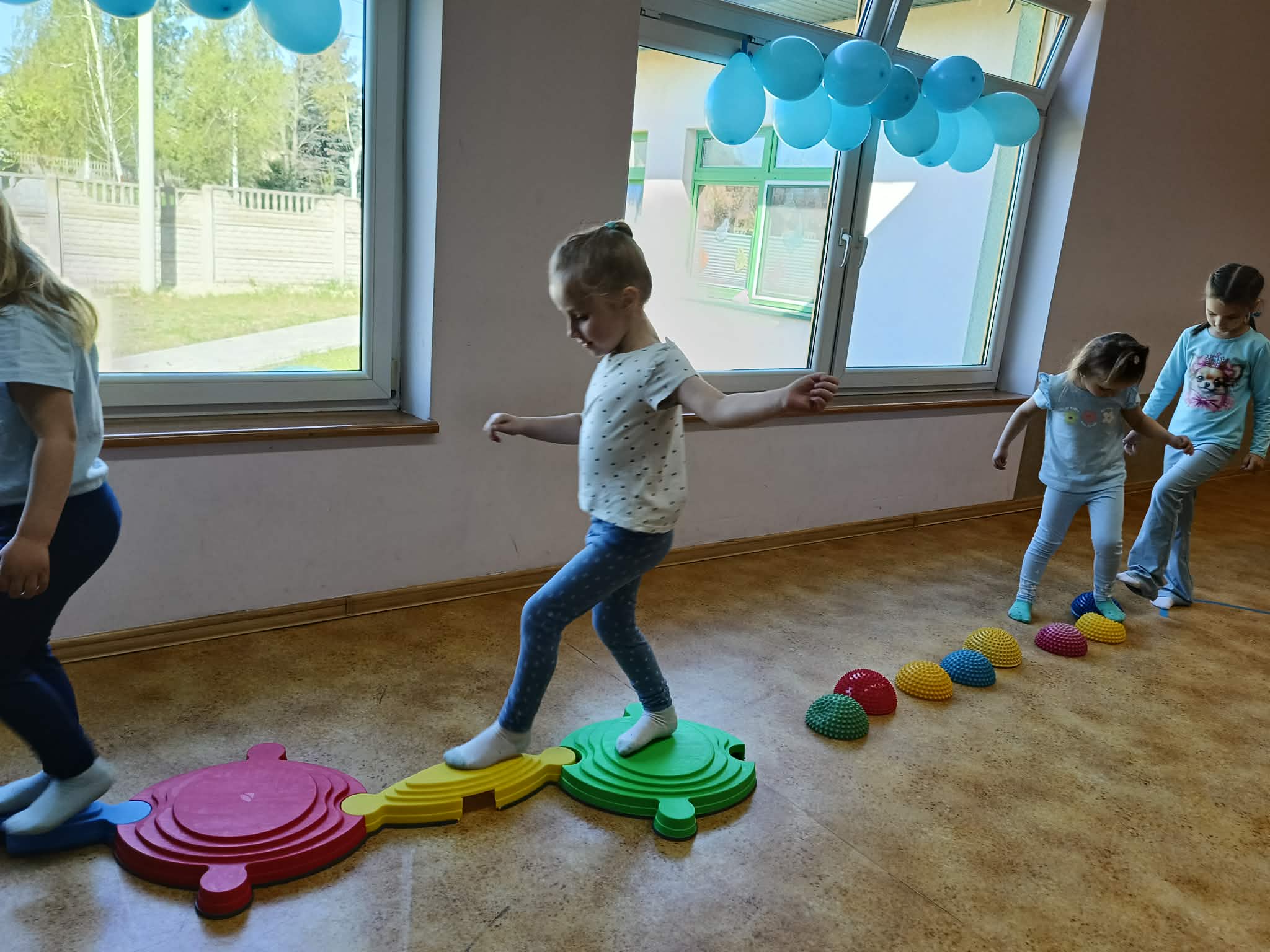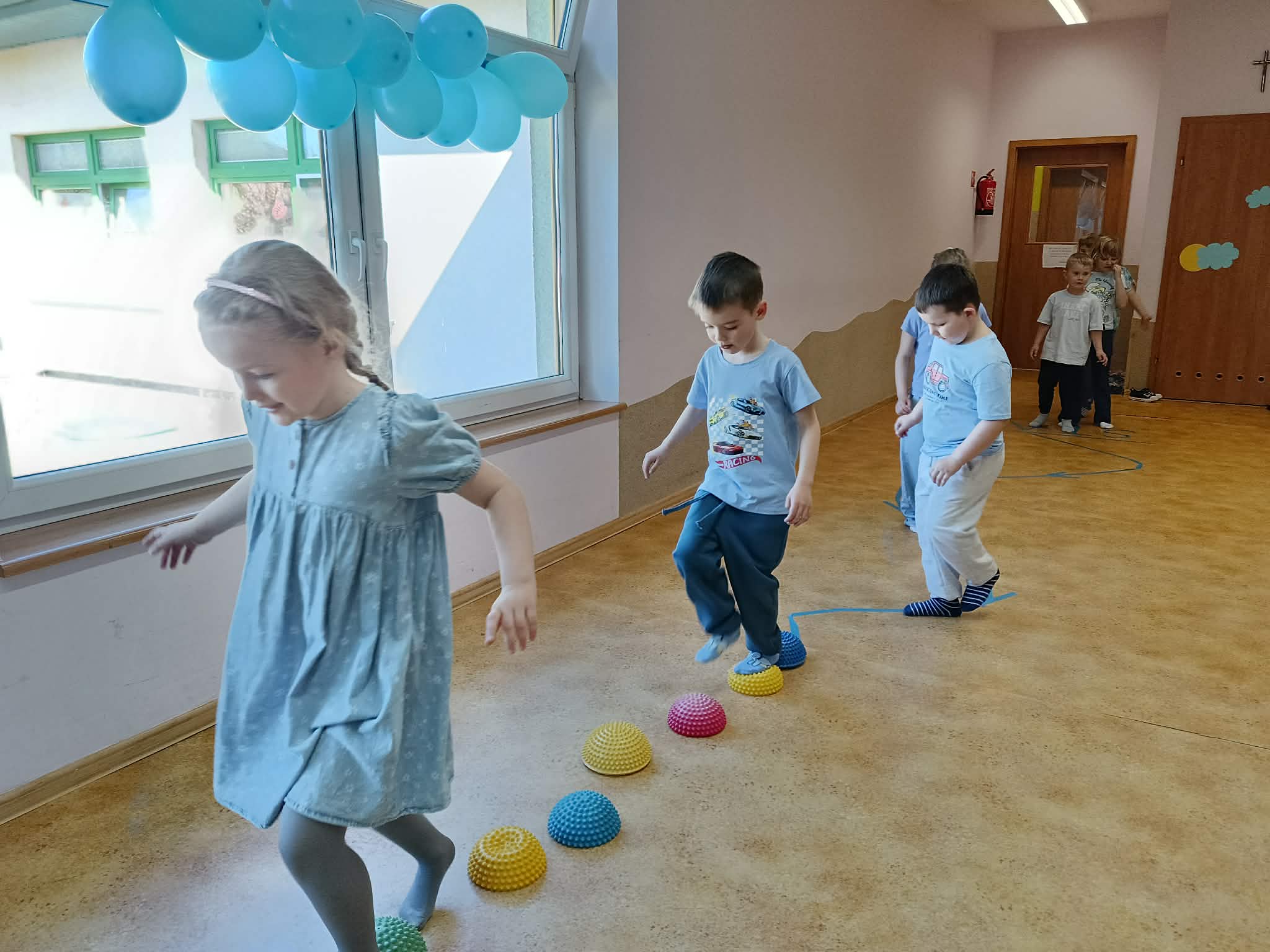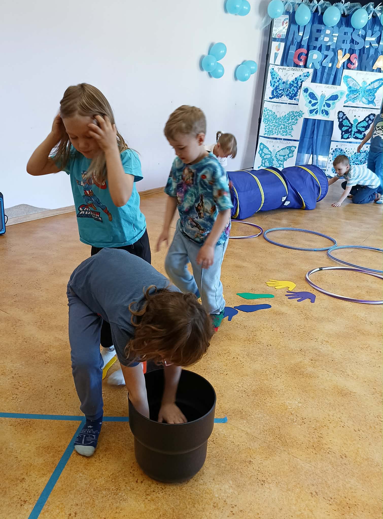 Wśród przygotowanych atrakcji znalazła się m.in. ścieżka sensoryczna, przerzucanie piłeczek, chodzenie w tunelu oraz skakanie przez przeszkody, które dostarczyły dzieciom mnóstwo frajdy i pozytywnych emocji.