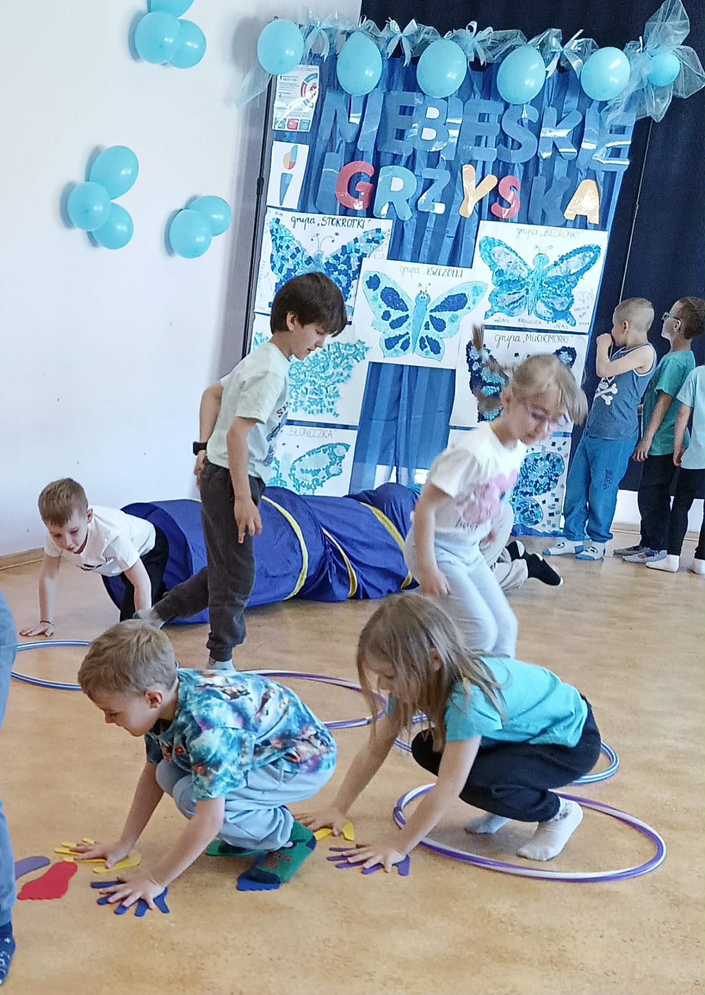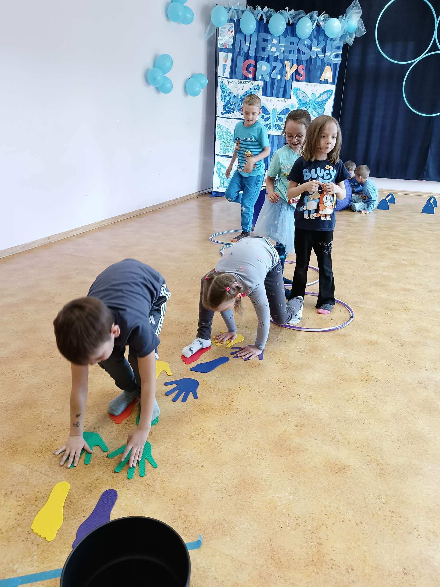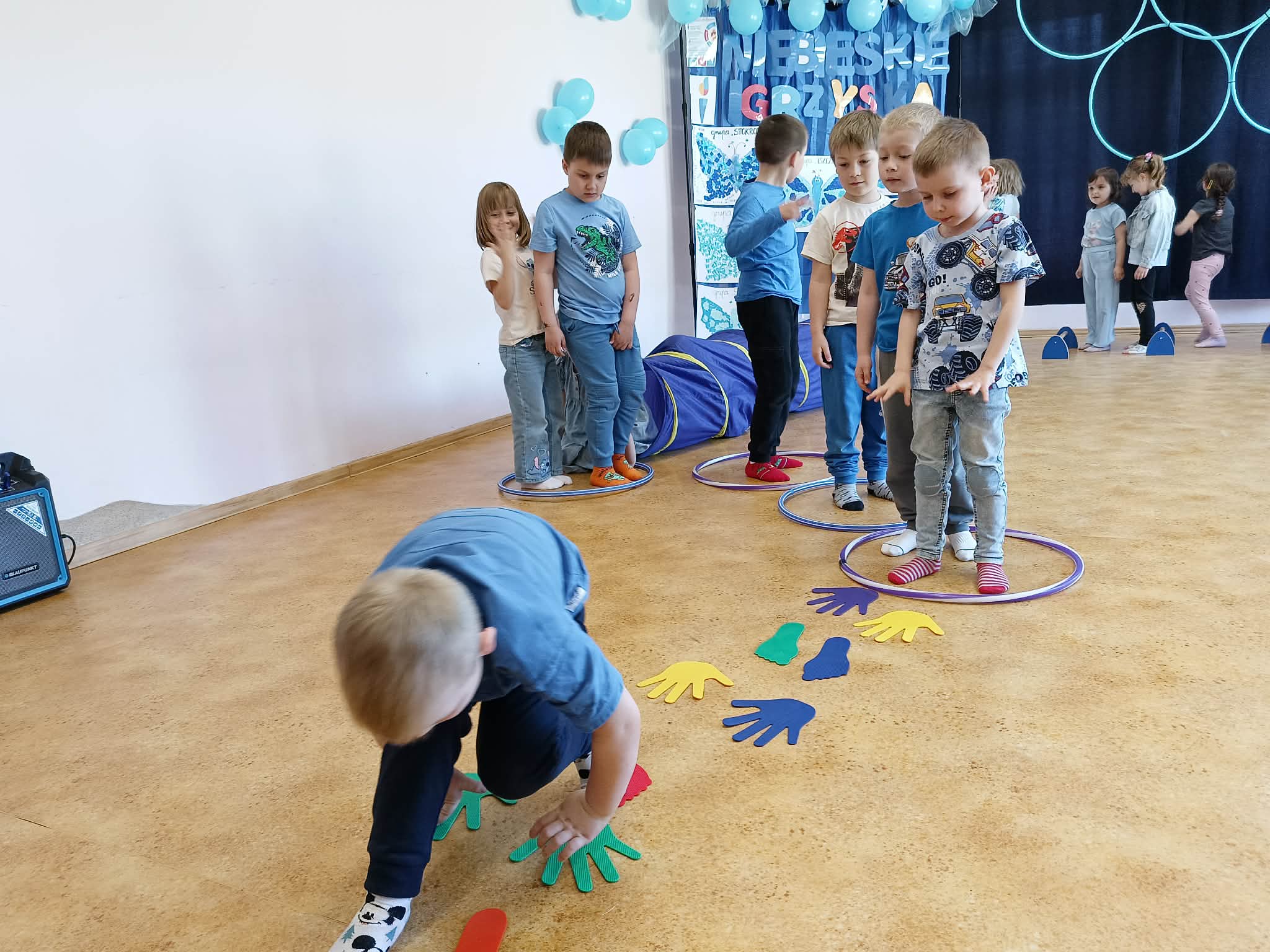 Drugi dzień Niebieskich Igrzysk w Przedszkolu Samorządowym w Gorzkowicach upłynął pod znakiem sportowych emocji i wspólnej zabawy. W drugiej części wydarzenia dzieci ze wszystkich grup wzięły udział w różnorodnych konkurencjach ruchowych, dostosowanych do ich wieku i możliwości.