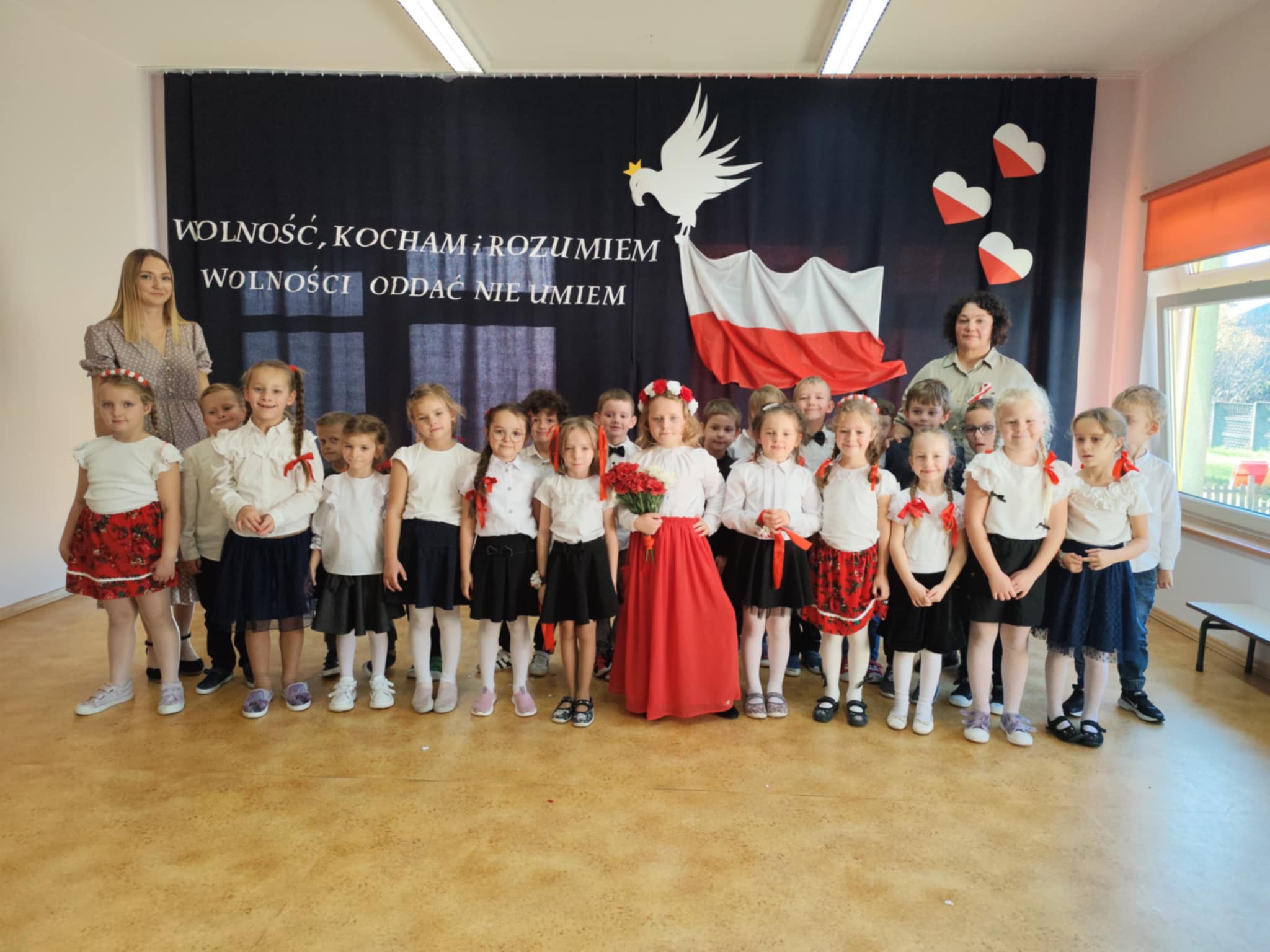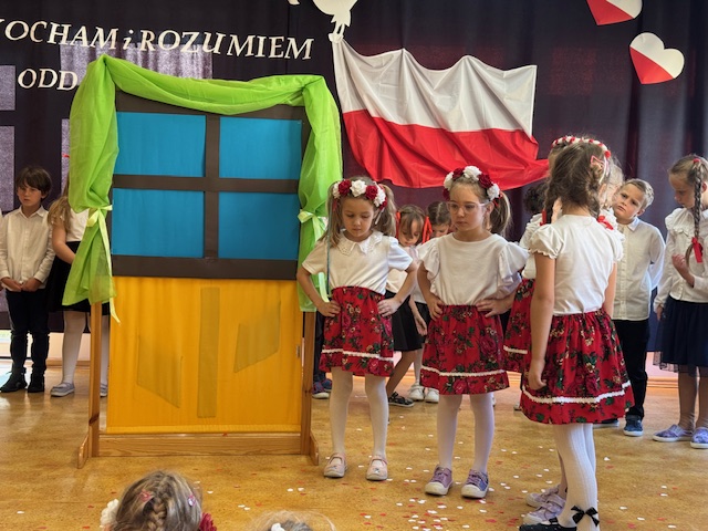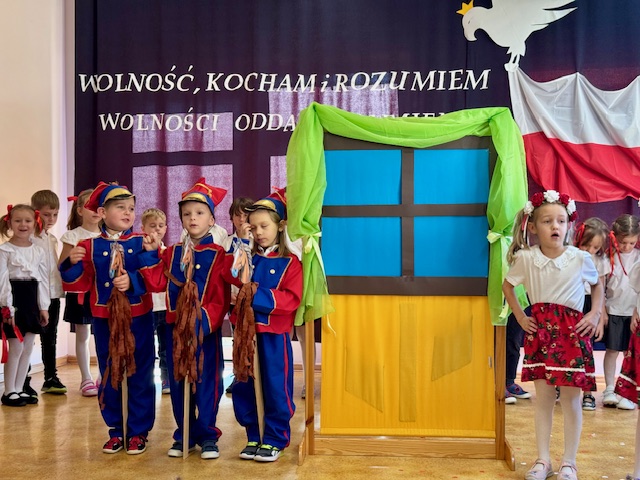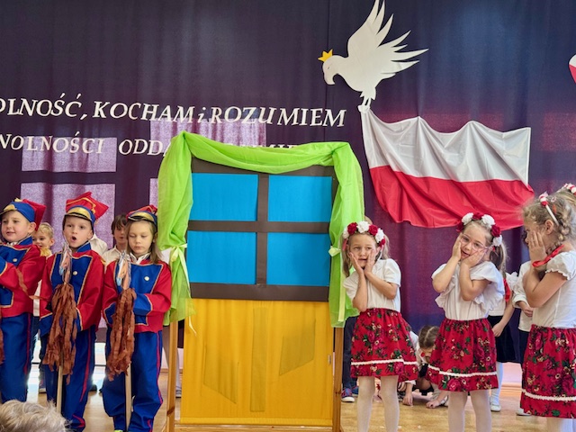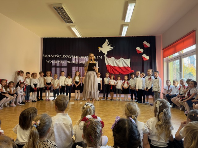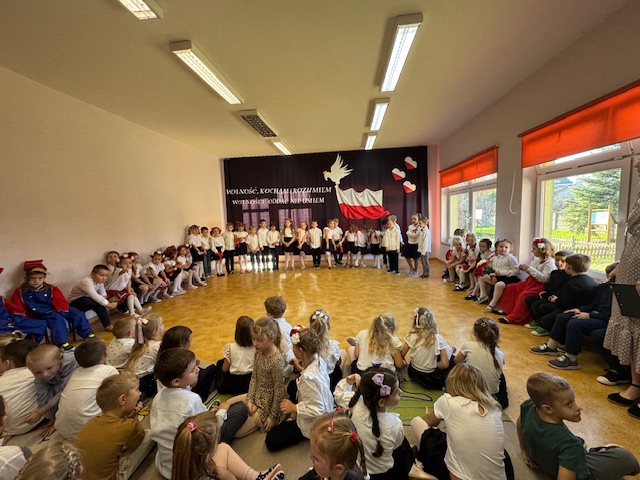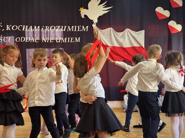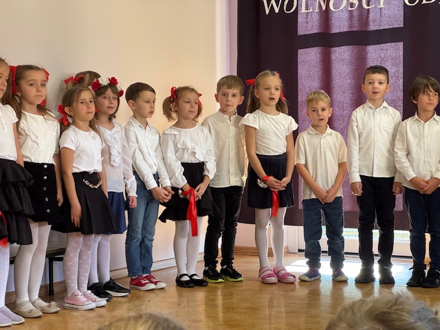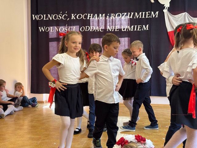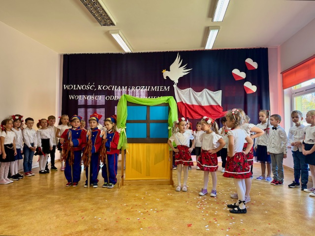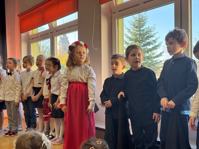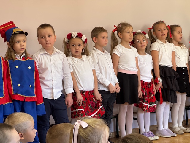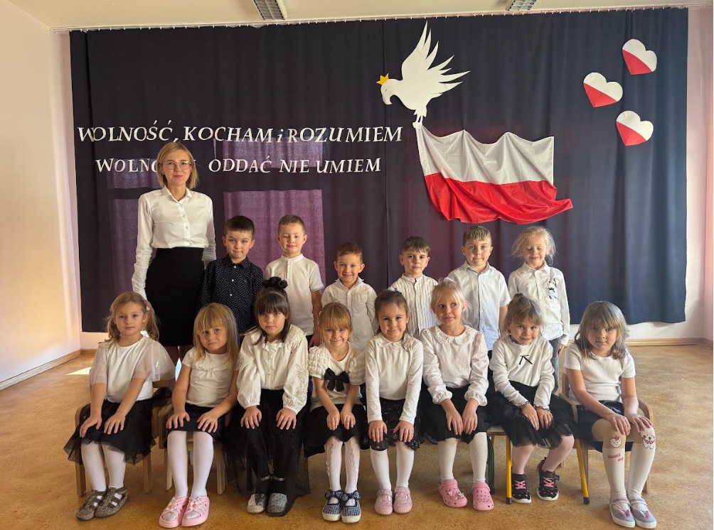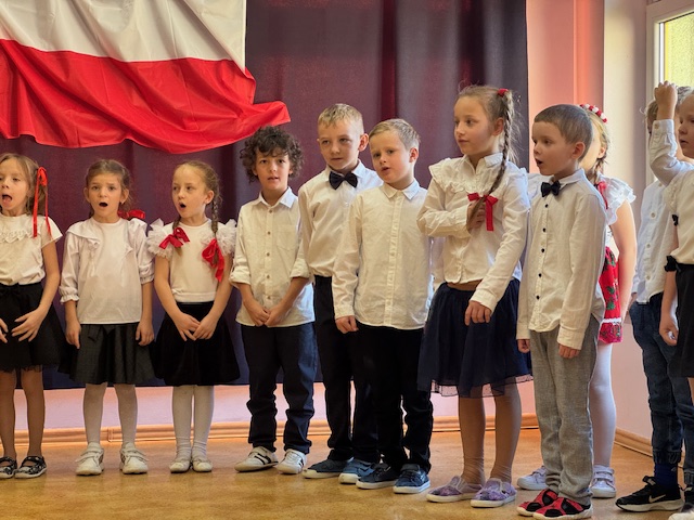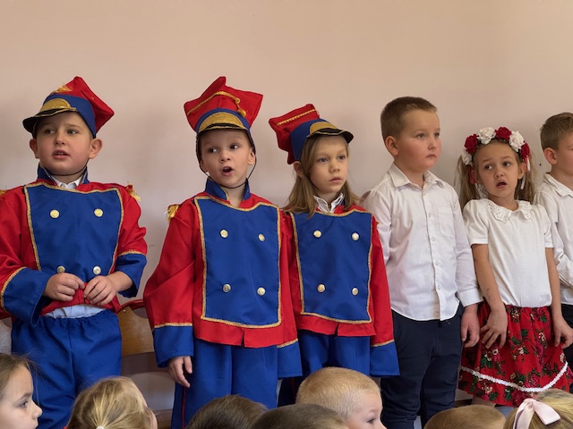 Całe wydarzenie przebiegało w podniosłej, pełnej wzruszeń atmosferze, a przedszkolaki swoją postawą i zaangażowaniem udowodniły, że wartości patriotyczne są im bliskie już od najmłodszych lat. Występ z wielkim zainteresowaniem obejrzały także pozostałe dzieci z przedszkola, które wspólnie z nauczycielami włączyły się w obchody tego wyjątkowego dnia. W ramach przygotowań do uroczystości przedszkolaki wykonywały prace plastyczne o tematyce patriotycznej, które ozdobiły sale oraz korytarze przedszkola, wprowadzając wszystkich w świąteczny, narodowy nastrój.