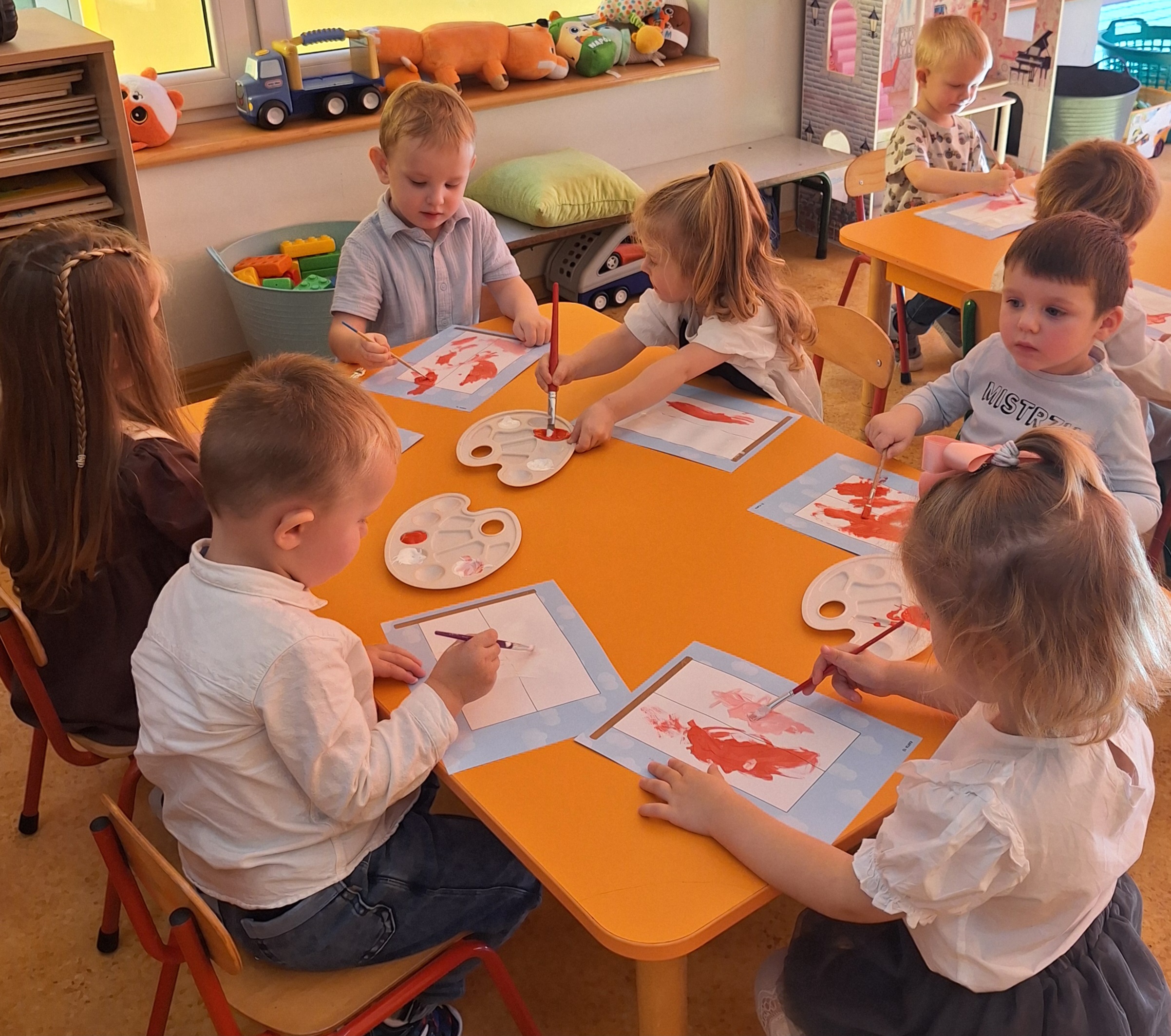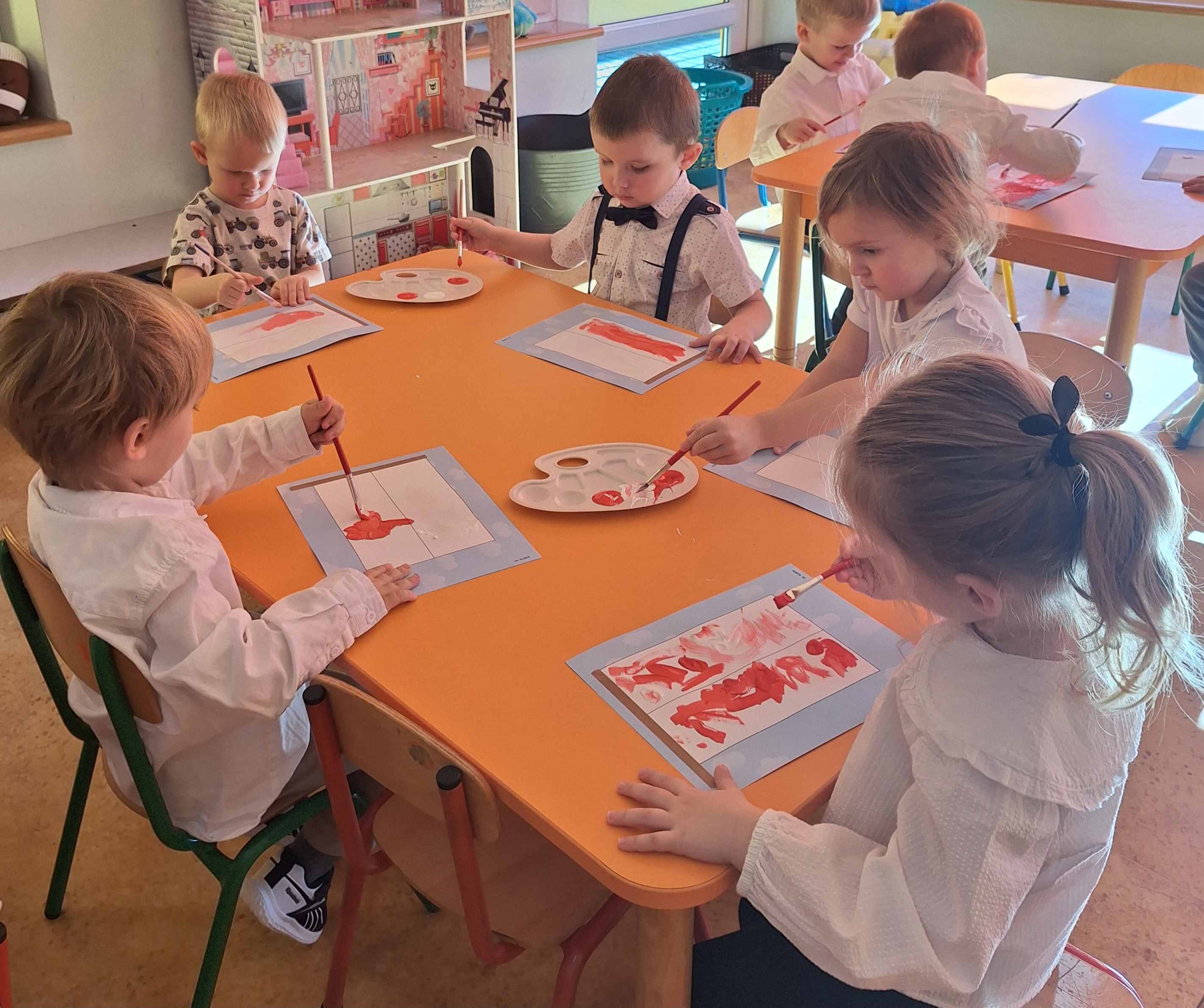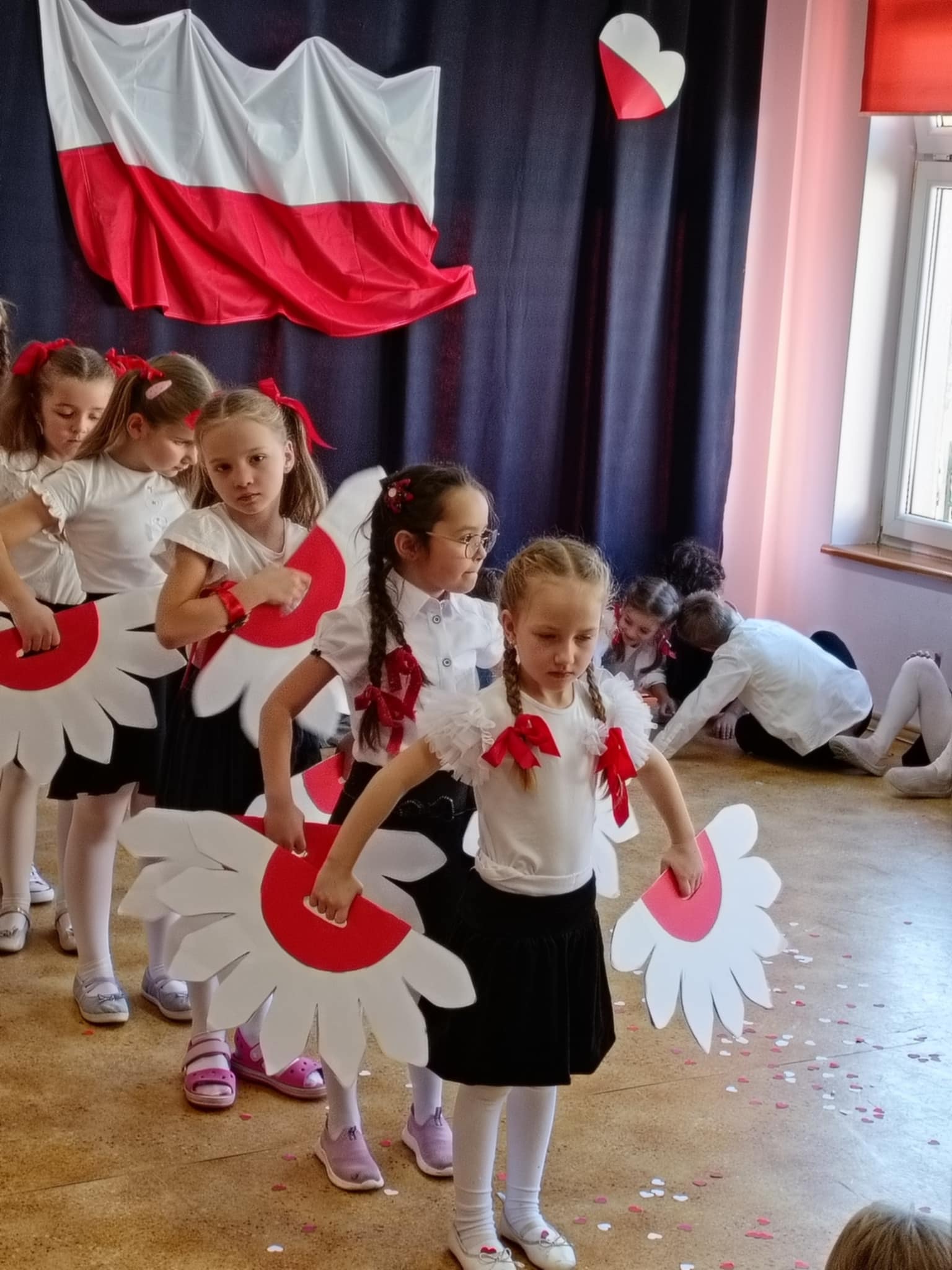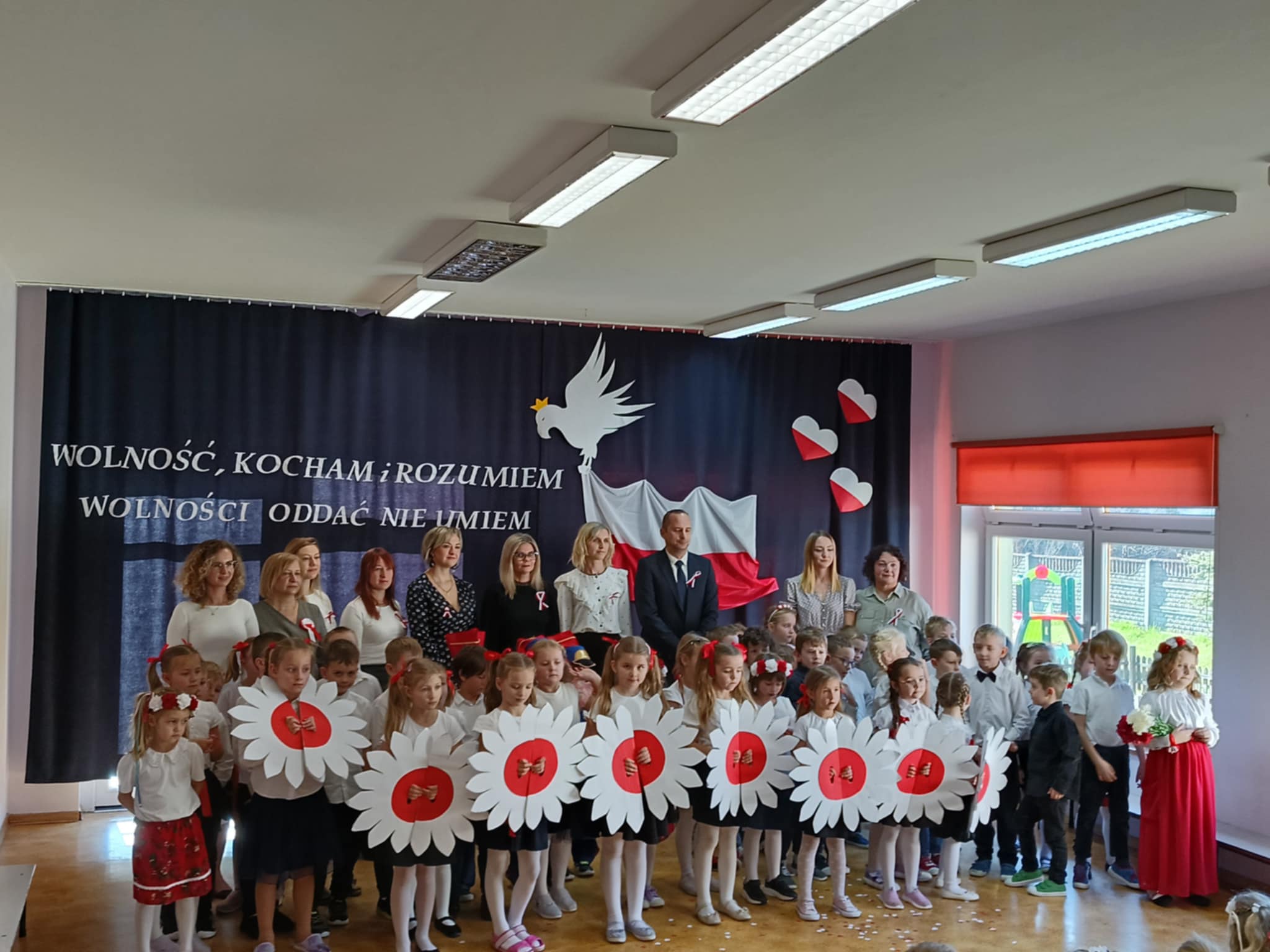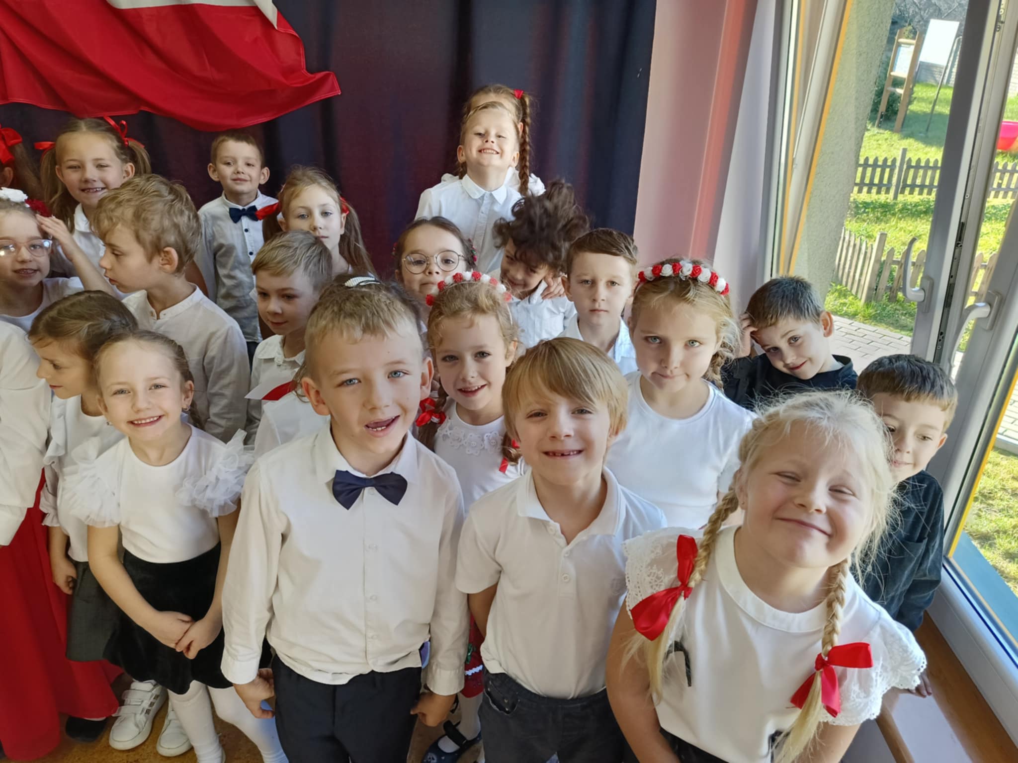 Całe wydarzenie przebiegało w podniosłej, pełnej wzruszeń atmosferze, a przedszkolaki swoją postawą i zaangażowaniem udowodniły, że wartości patriotyczne są im bliskie już od najmłodszych lat. Występ z wielkim zainteresowaniem obejrzały także pozostałe dzieci z przedszkola, które wspólnie z nauczycielami włączyły się w obchody tego wyjątkowego dnia. W ramach przygotowań do uroczystości przedszkolaki wykonywały prace plastyczne o tematyce patriotycznej, które ozdobiły sale oraz korytarze przedszkola, wprowadzając wszystkich w świąteczny, narodowy nastrój.