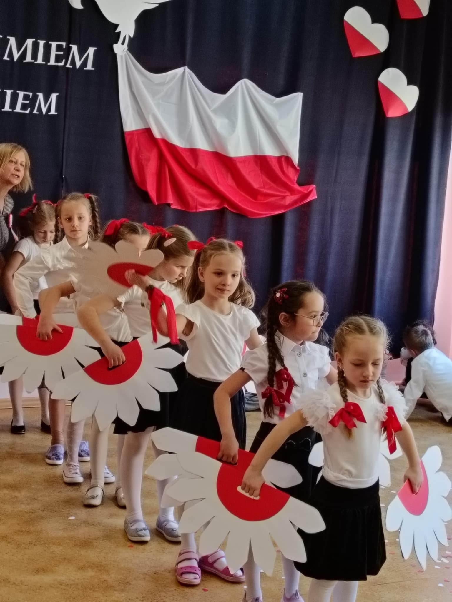 Przedszkolaki zaprezentowały wspaniałe umiejętności recytatorskie, wokalne i taneczne, które zostały nagrodzone gromkimi brawami. Wspólne odśpiewanie hymnu państwowego – „Mazurka Dąbrowskiego” było szczególnym momentem, który połączył wszystkich uczestników w poczuciu dumy i wspólnoty narodowej.