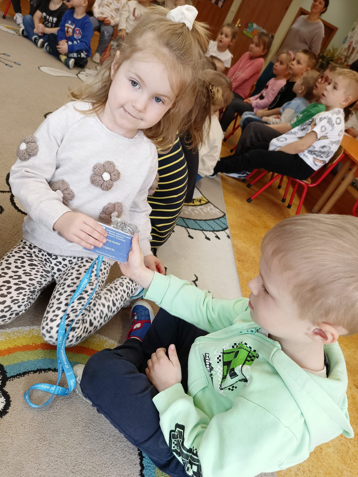 W piątek 27 marca przybył do grupy Krasnali i Motylków, niecodzienny gość – pielęgniarka Pani Karolina Dubiel. Pani Karolina opowiedziała dzieciom na czym polega jej praca, zaprezentowała atrybuty jakimi posługuje się w codziennej pracy, przekazała też informacje jak dbać o zdrowie i higienę. Przedszkolaki uczyły się jak opatrzyć ranę, założyć opaskę uciskową, przykleić plaster, zmierzyć ciśnienie, zrobić zastrzyk, przy pomocy stetoskopu wysłuchiwały bicia serca. Tak praktyczną i zarazem atrakcyjną lekcję z pewnością dzieci zapamiętają na długo. Serdecznie dziękujemy pani Karolinie za poświęcony nam czas. Wizyta pani pielęgniarki zakończyła się pamiątkowym zdjęciem, a Pani Katarzyna Święcicka