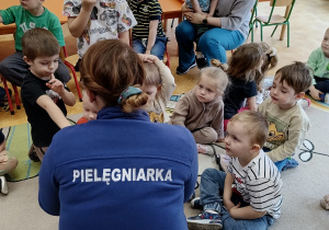 Spotkanie z pielęgniarką w Przedszkolu Samorządowym w Gorzkowicach.