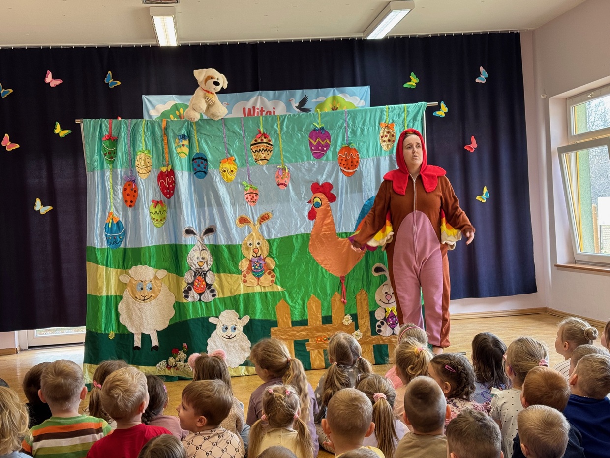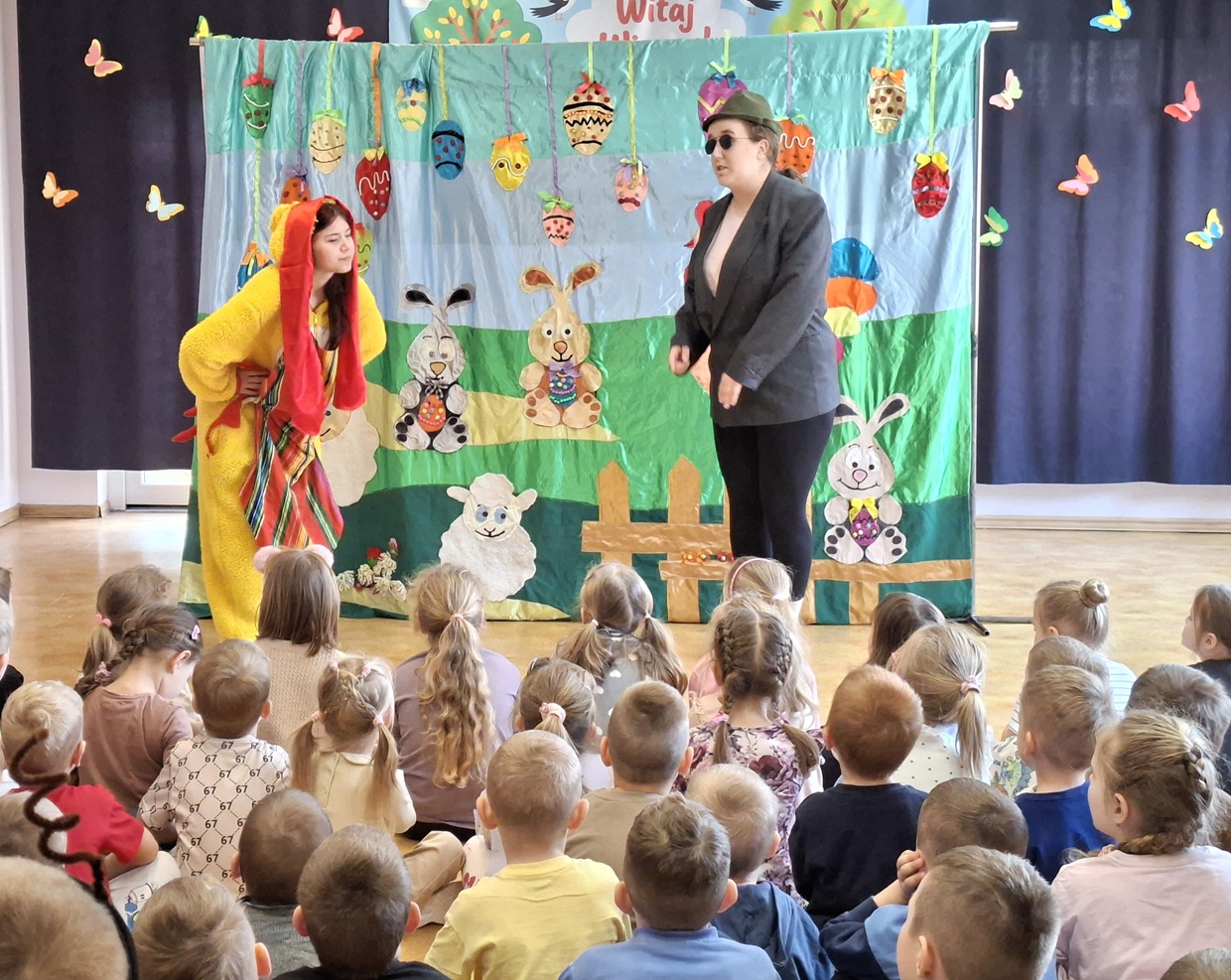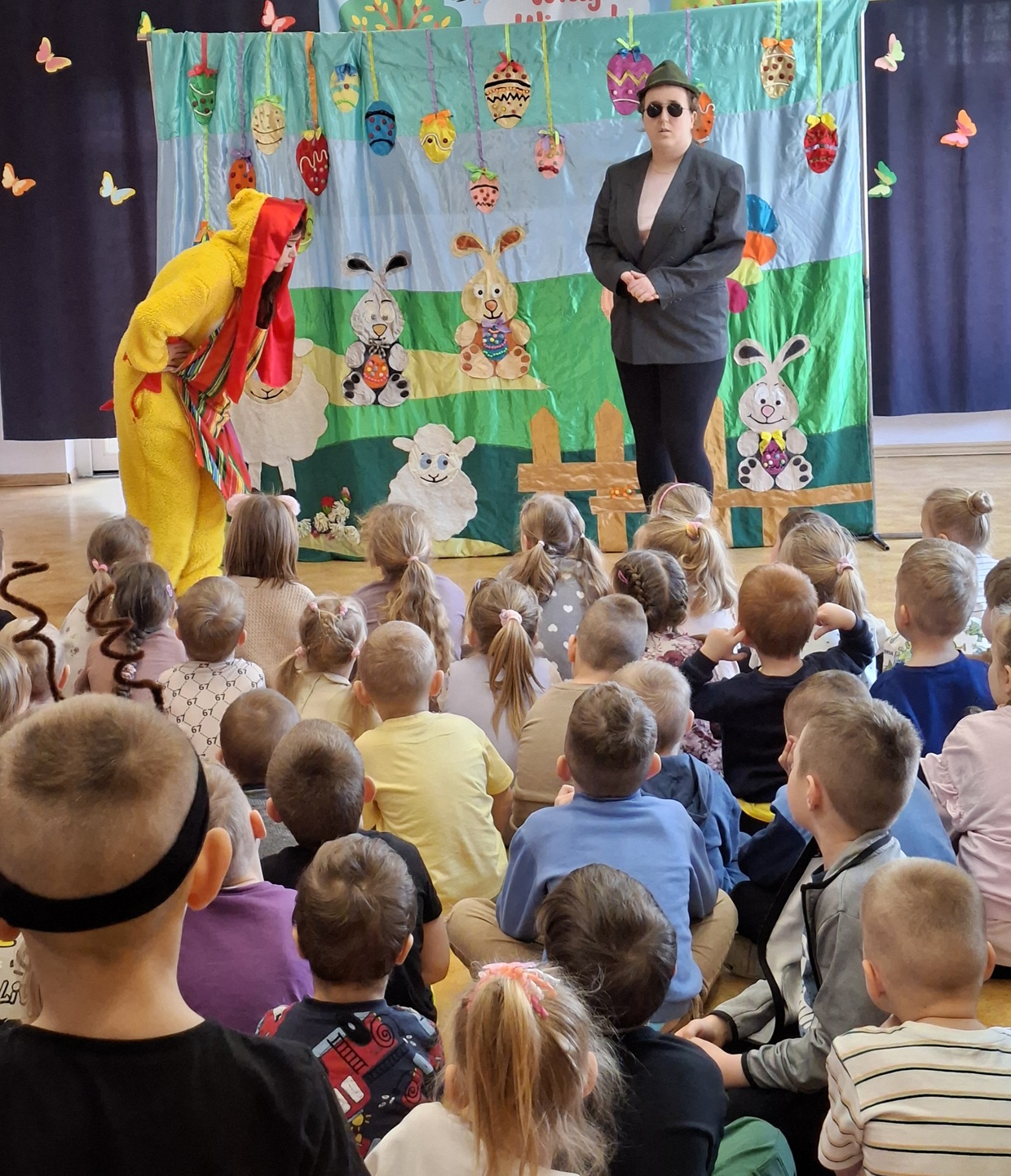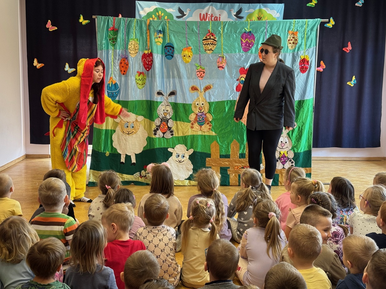 i reagowały z ogromnym zaangażowaniem. Radosna atmosfera, elementy magii oraz bezpośredni kontakt z aktorami wywołały wiele uśmiechów i pozytywnych emocji. Było to wydarzenie, które na długo pozostanie w pamięci dzieci jako pełne ciepła i wiosennej radości spotkanie z teatrem.