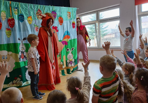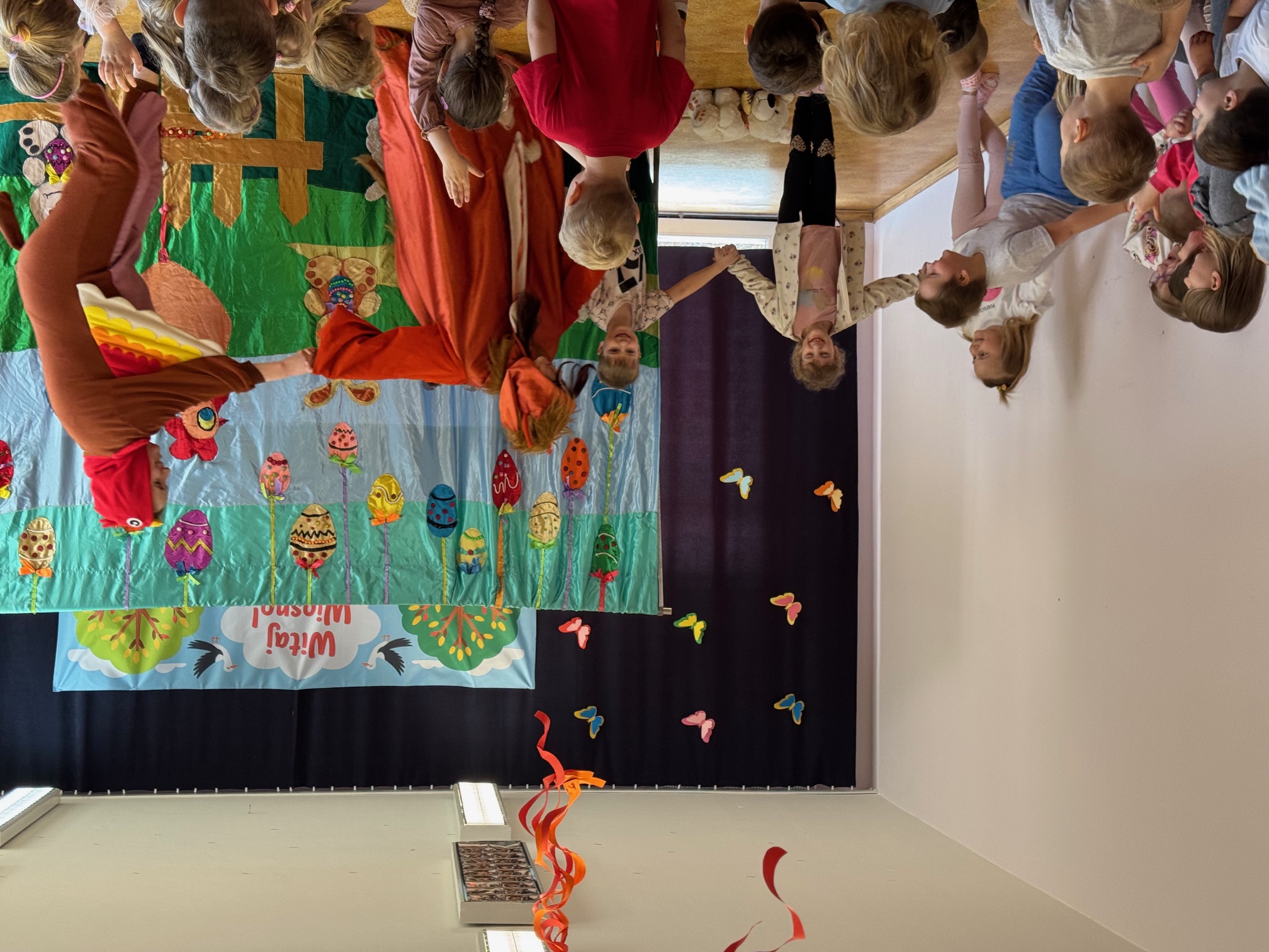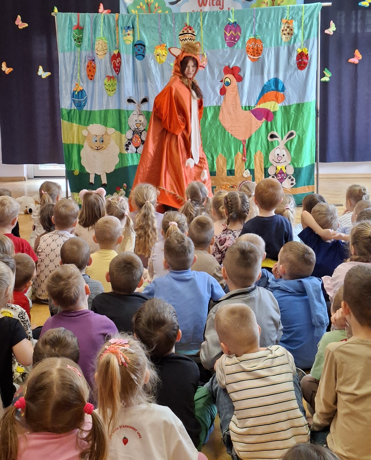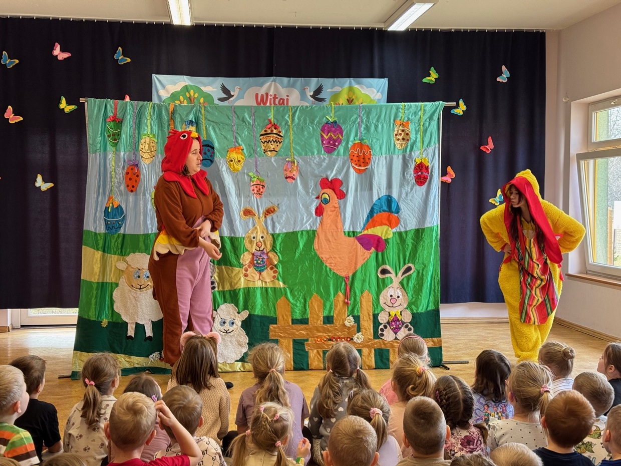 i reagowały z ogromnym zaangażowaniem. Radosna atmosfera, elementy magii oraz bezpośredni kontakt z aktorami wywołały wiele uśmiechów i pozytywnych emocji. Było to wydarzenie, które na długo pozostanie w pamięci dzieci jako pełne ciepła i wiosennej radości spotkanie z teatrem.