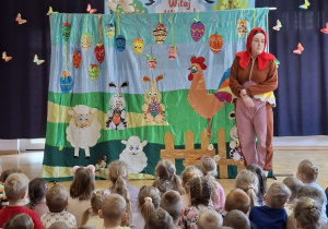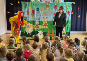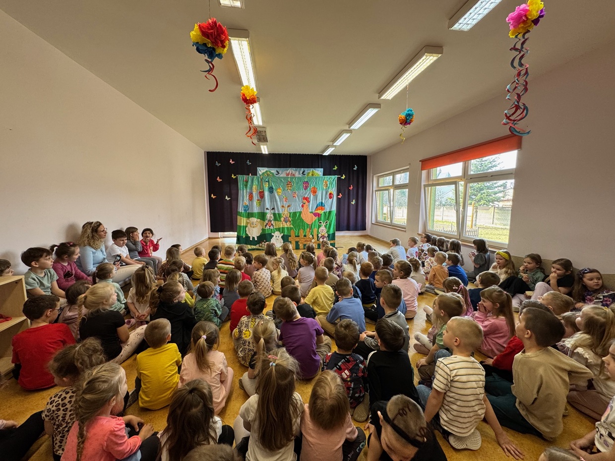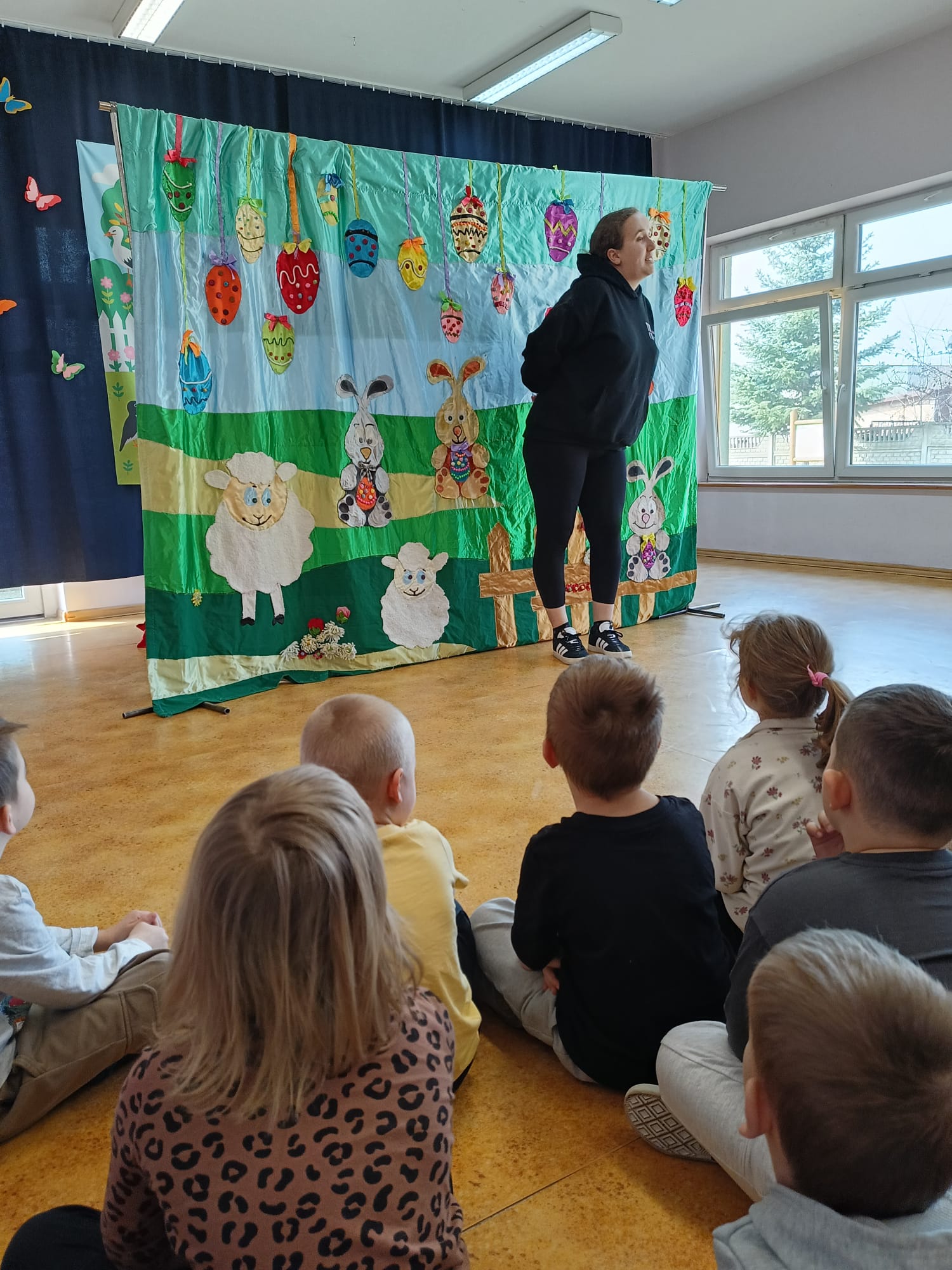 Teatr Magik z przedstawieniem „Zagubiona pisanka” w Przedszkole Samorządowym w Gorzkowicach.
