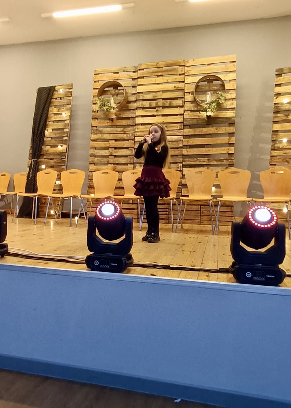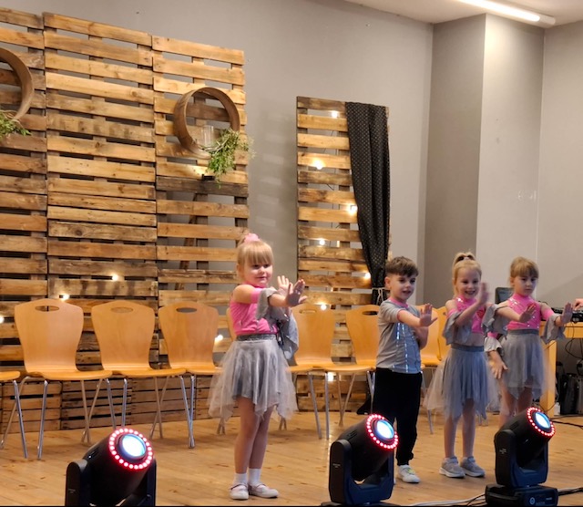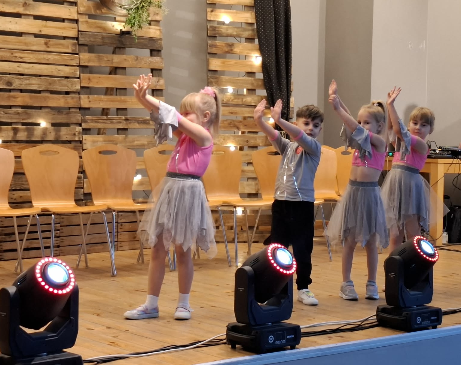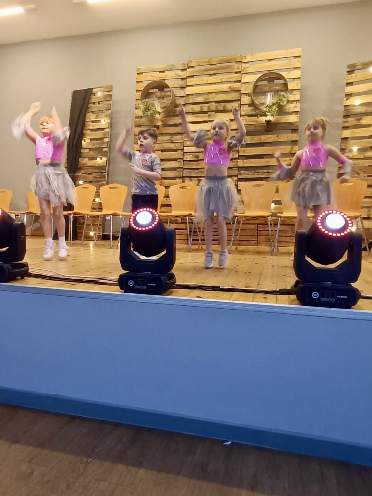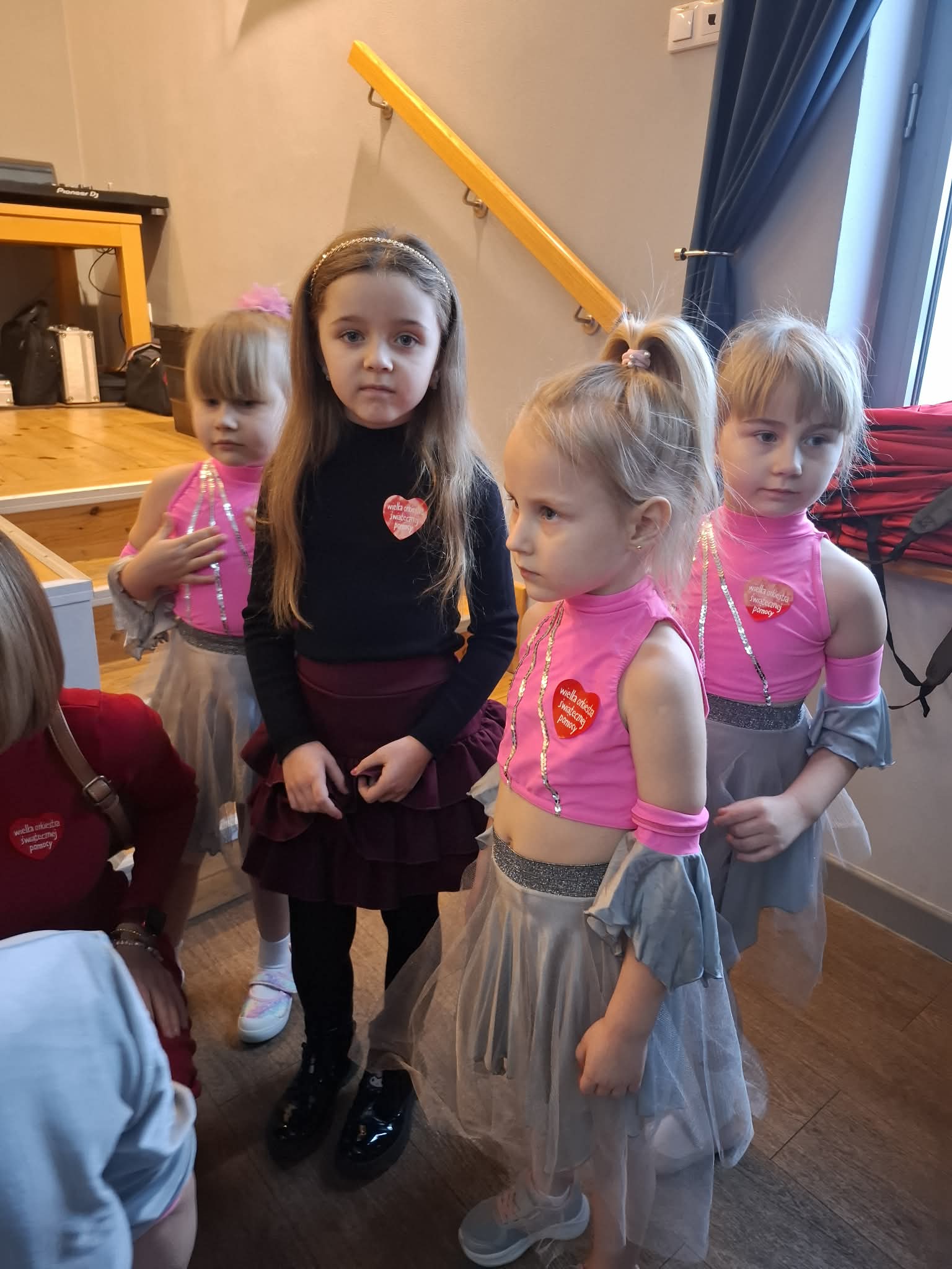 z naszego przedszkola . Reprezentanci grupy Biedronki z radością zatańczyli do utworu „Góry do góry”, a Klara Kruszyńska z grupy Pszczółki pięknie zaprezentowała się, wykonując piosenkę „A ja mam psa”. Brawo dla małych artystów za odwagę, uśmiech i ogromne serca!
