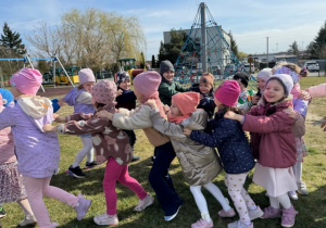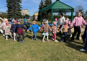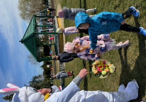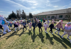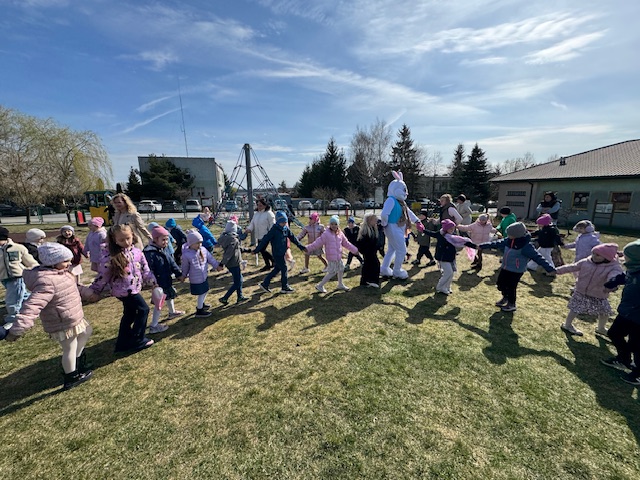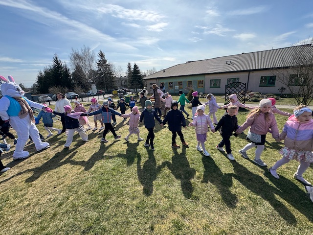 1 kwietnia 2026 roku naszego Przedszkola przybył w odwiedziny Wielkanocny Zajączek, który sprawił naszym dzieciom mnóstwo radości i uśmiechu swoją obecnością. Zajączek wcześniej z pomocą swoich pomocników poukrywał smaczne niespodzianki. Dzieciaczki wspólnie z puszystym gościem ruszyły na poszukiwanie jajeczek, następnie odpowiedziały wspólnie na kilka zagadek dotyczących świąt Wielkanocnych i wzięły udział w kilku zabawach sprawnościowych. Po zakończeniu zmagań Zajączek porwał wszystkie dzieci do wspólnej zabawy.