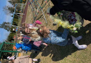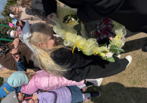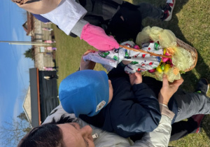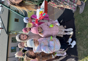 Na koniec swojej wizyty nasz puszysty gość przygotował słodki upominek dla każdego i zrobił sobie z dziećmi pamiątkowe zdjęcie. Do zobaczenia za rok Wielkanocny Zajączku !