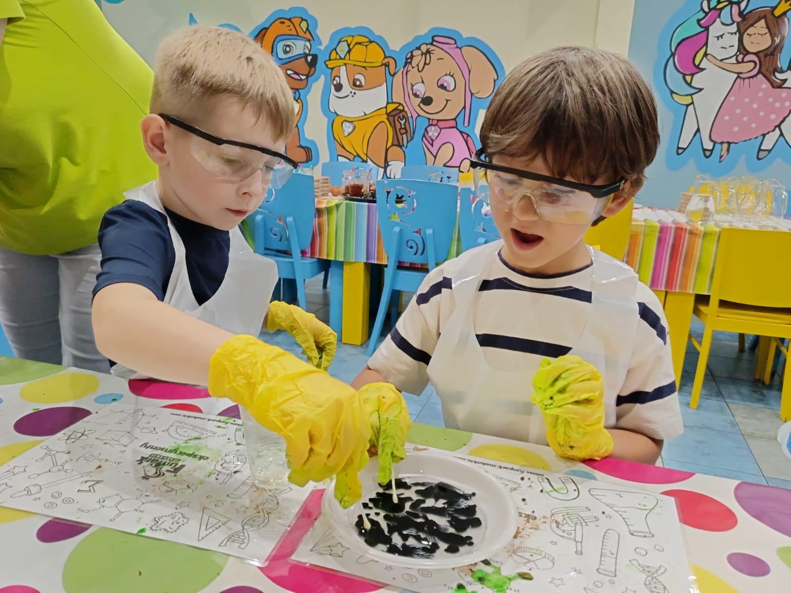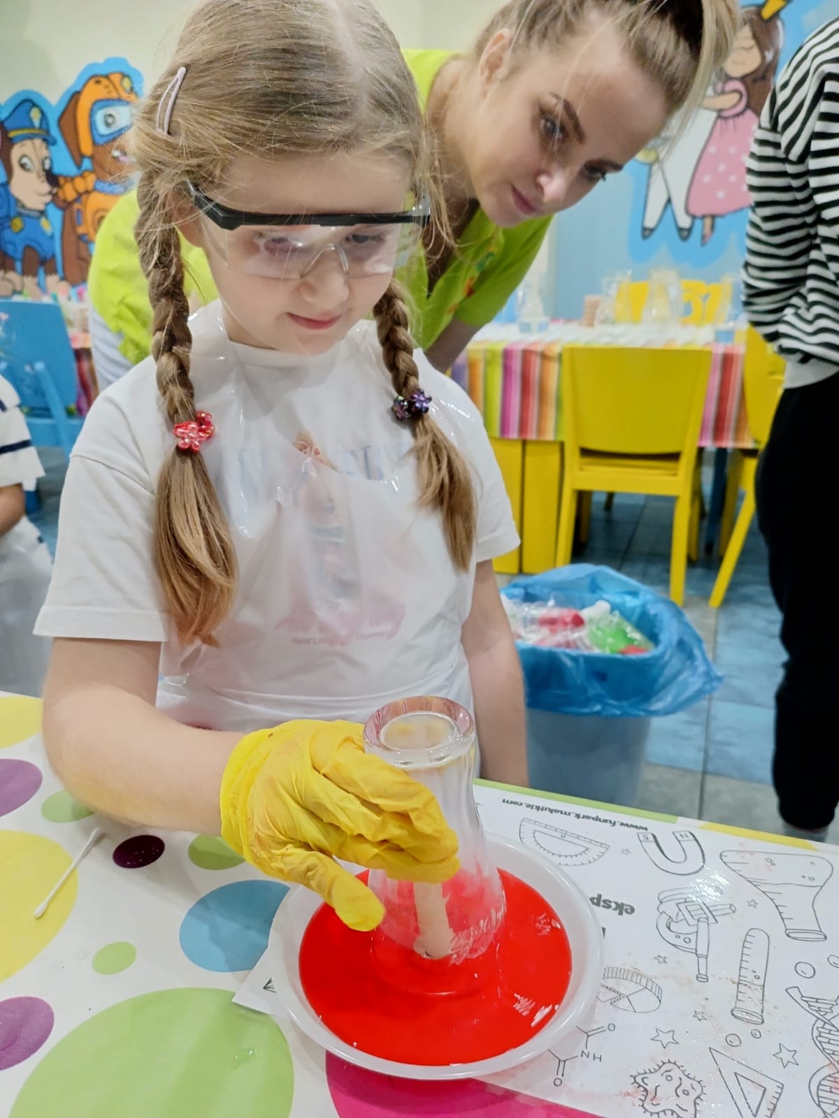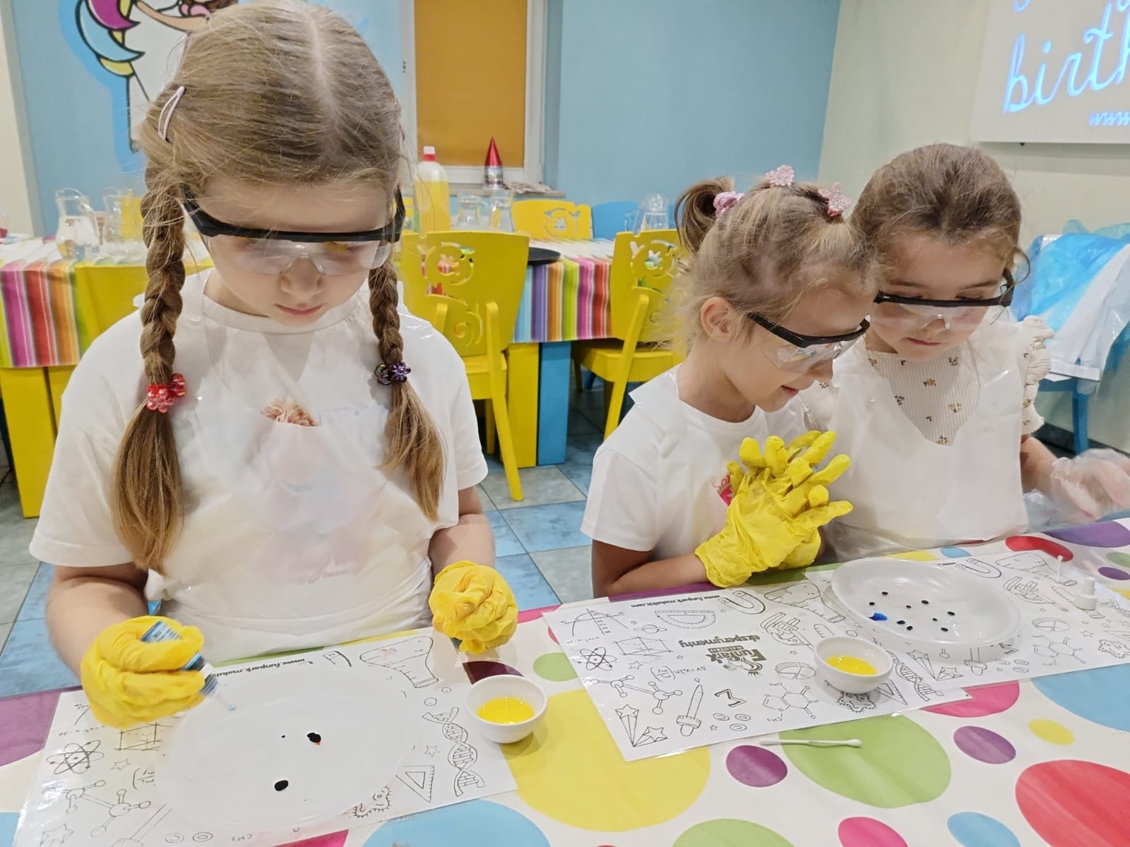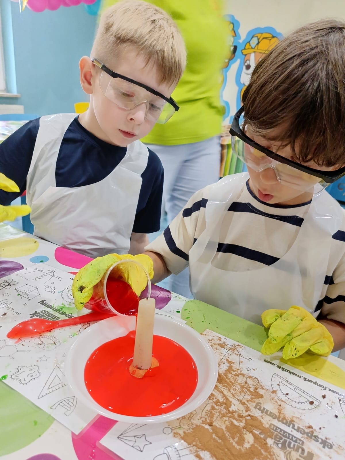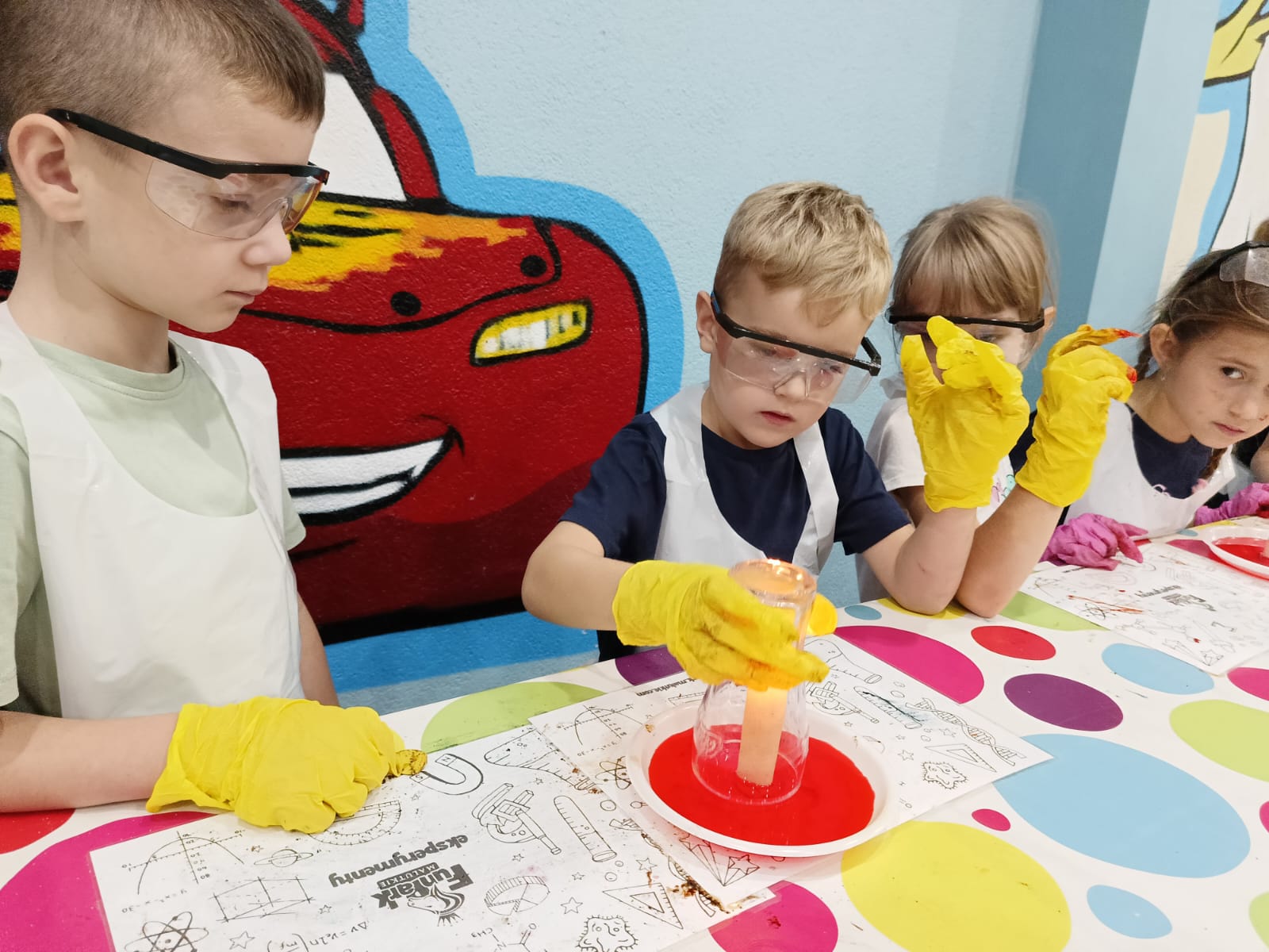 Kolejną atrakcją, na którą czekaliśmy z ogromną ciekawością, były - warsztaty eksperymenty. Mali naukowcy pod czujnym okiem animatorów przeprowadzali fascynujące eksperymenty