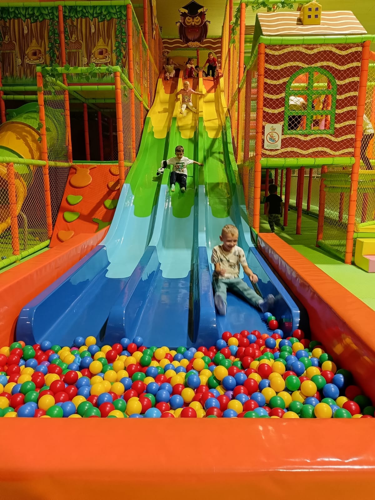 Pobyt w sali zabaw, to doskonała okazja do rozwoju sprawności fizycznej, zręczności, koordynacji ruchowej, orientacji w przestrzeni oraz integracji grupy poprzez wspólną zabawę.