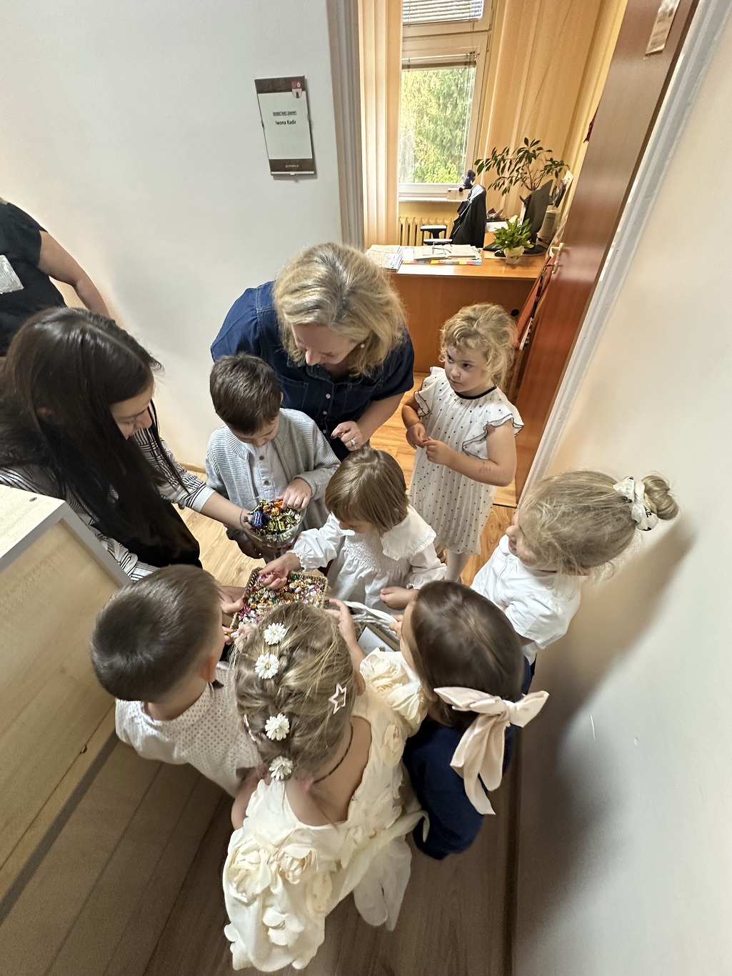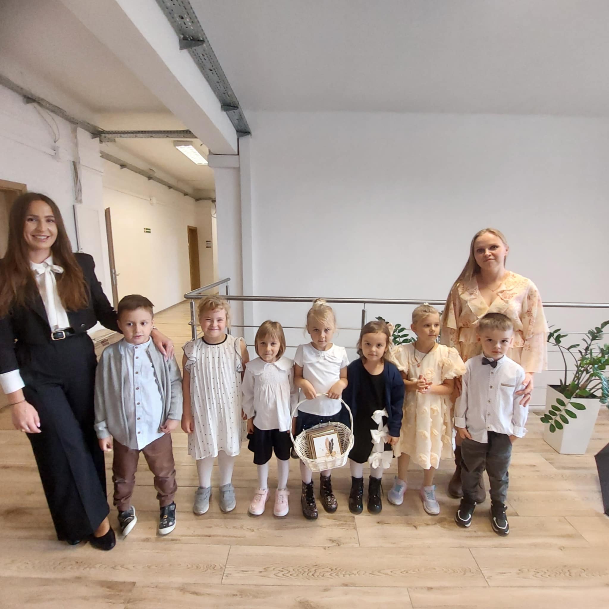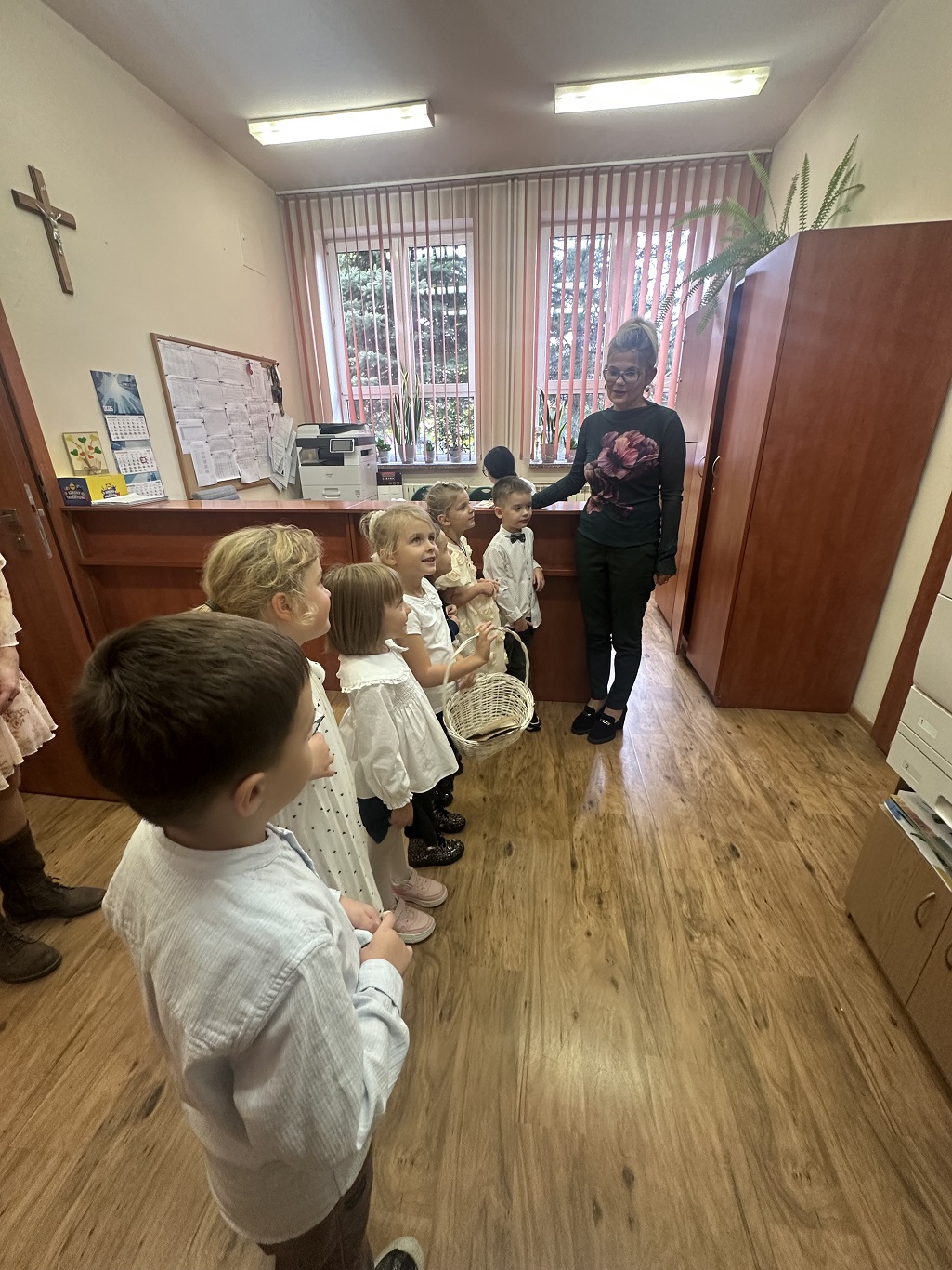 Dnia 10 października przedstawiciele dzieci z grupy „Stokrotki” z Przedszkola Samorządowego w Gorzkowicach wybrały się z wizytą do Urzędu Gminy, Administracji Placówek Oświatowych oraz Szkoły Podstawowej w Gorzkowicach. Celem wyjścia było złożenie życzeń z okazji Święta Edukacji Narodowej. Przedszkolaki przekazały na ręce Pani Sekretarz Gminy – Iwony Kadir oraz Pani Dyrektor Szkoły Podstawowej – Magdaleny Treścińskiej-Niemczyk okolicznościowe kartki z życzeniami i wyrazami wdzięczności za trud wkładany w codzienną pracę na rzecz dzieci i edukacji. Podczas spotkania mali przedstawiciele przedszkola zaprezentowali krótki wierszyk, który wzbudził uśmiech wśród dorosłych. Dzieci zostały bardzo ciepło przyjęte, a wizyty przebiegły w serdecznej i radosnej atmosferze. Przedszkolaki z dumą reprezentowały swoją grupę i przedszkole, a całe wydarzenie stało się dla nich miłym i pouczającym doświadczeniem.